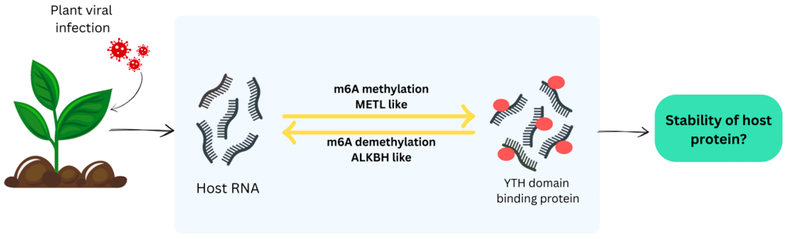 - Secco, N.; Sheikh, A.H.; Hirt, H. Insights into the role of N6-methyladenosine (m6A) in plant-virus interactions. J. Virol. 2025, 99, e0159824. [Google Scholar] [CrossRef]