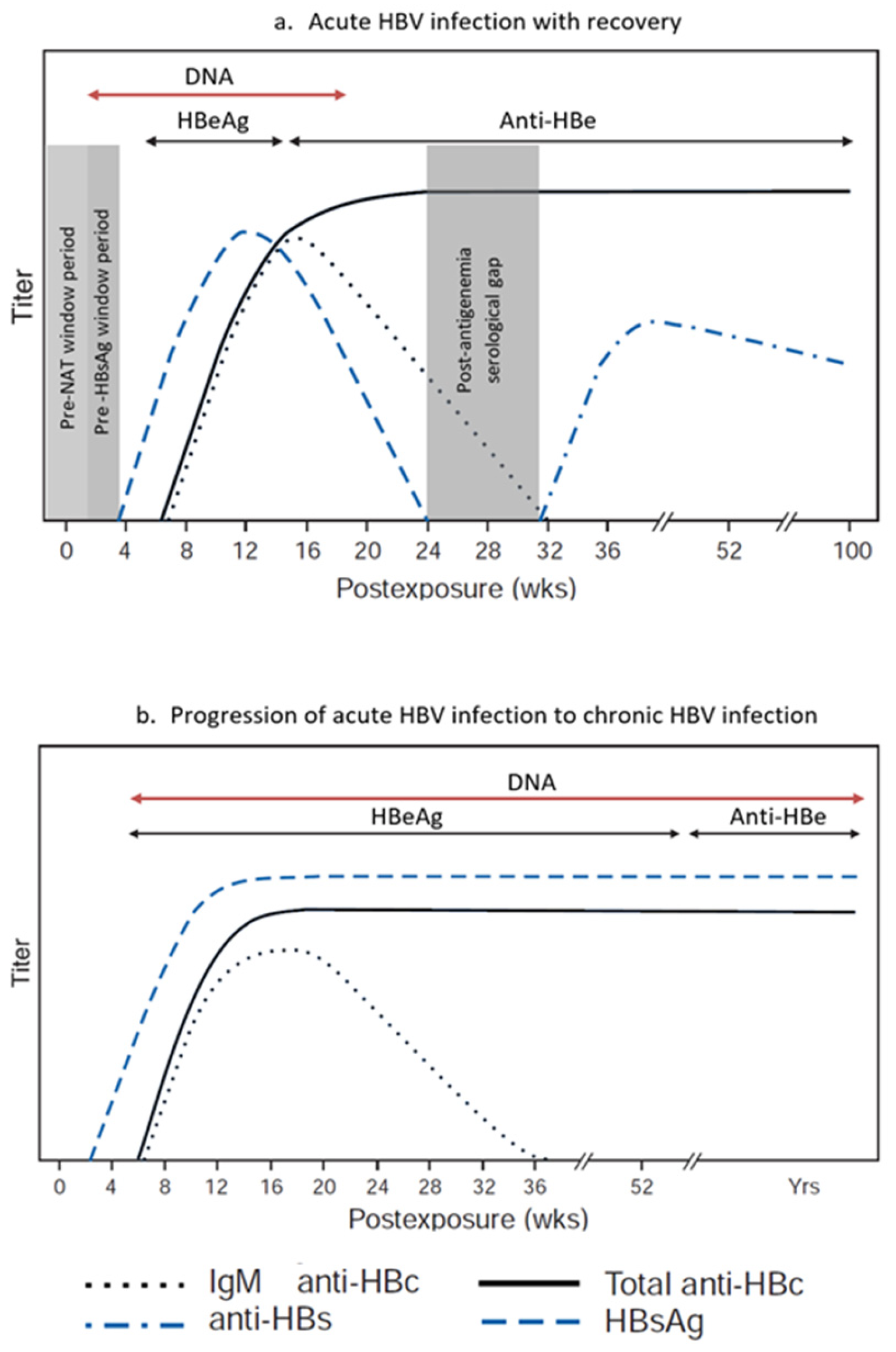 5]. Many low-income countries rely on rapid testing kits for HBV surface antigen (HBsAg), while most middle- and high-income countries utilize immunoassay (serological) testing for HBsAg combined with testing for the core (HBcAb) and surface (HBsAb) antibodies, with or without nucleic acid testing (NAT). Combining serological testing and NAT provides significant protection against the risk of HBV transmission through transfusion; however, the risk can virtually never be eliminated, mostly secondary to donations within the window period and donations by individuals who have occult hepatitis B infection (OBI). Blood banks face these and other challenges, such as false-positive results that may cause unnecessary deferrals and increased donor anxiety. While guides to the interpretation of serological tests for HBV are commonly available through many resources (