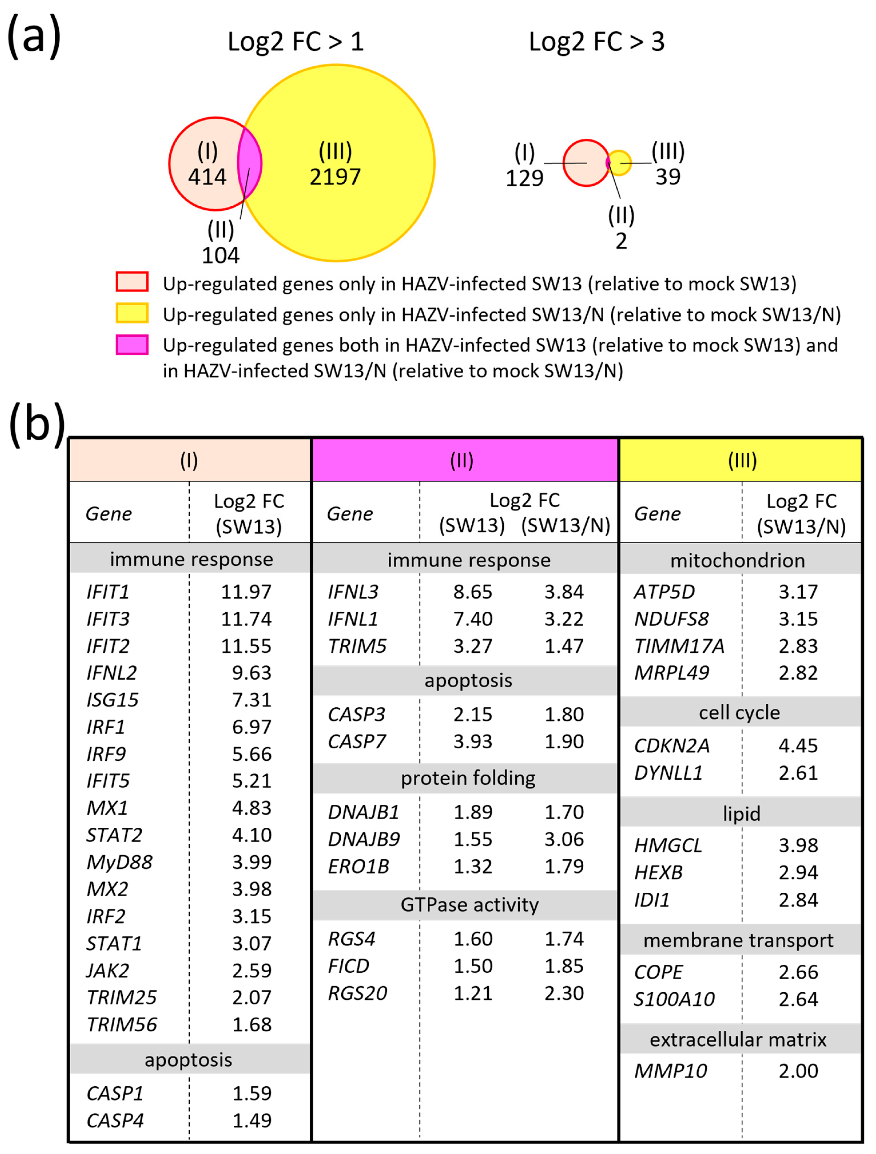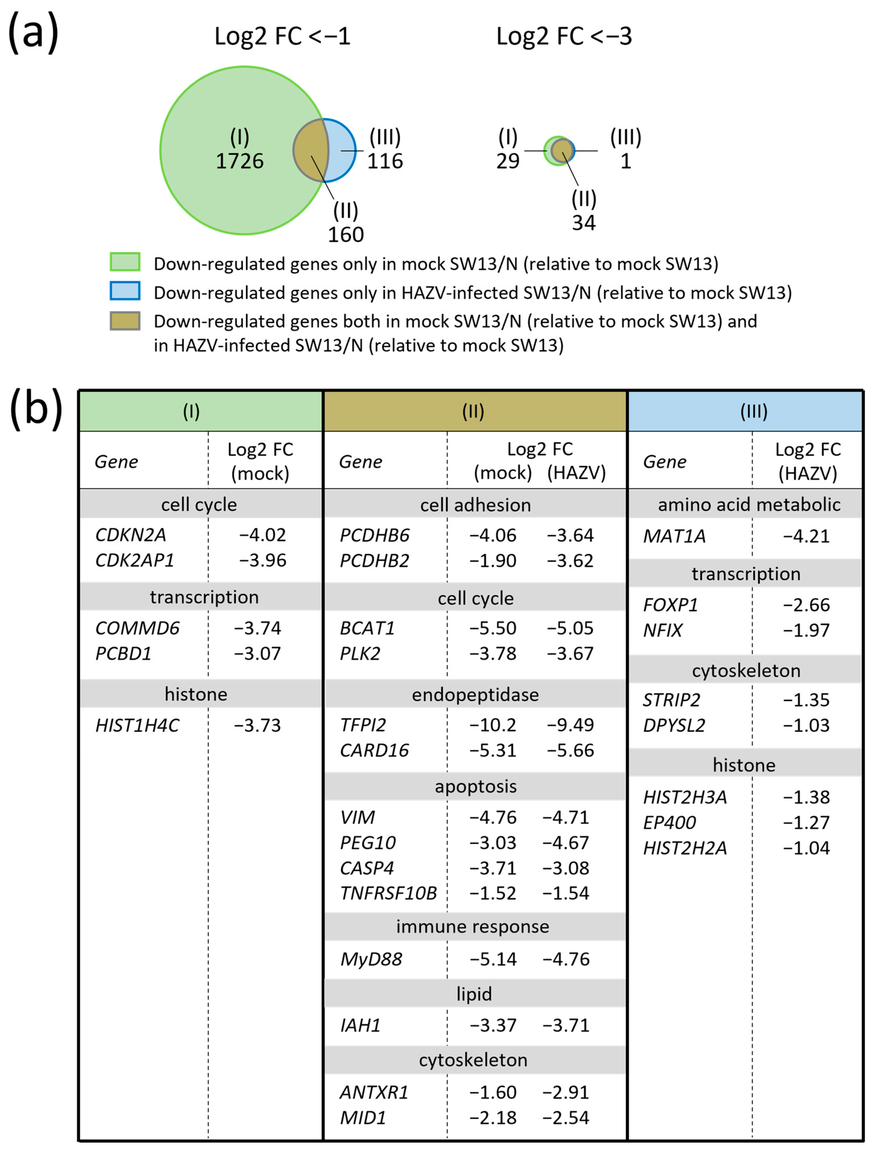 3.4. Various Genes Are Strongly Down-Regulated Both in Mock SW13/N and in HAZV-Infected SW13/N to a Similar Extent