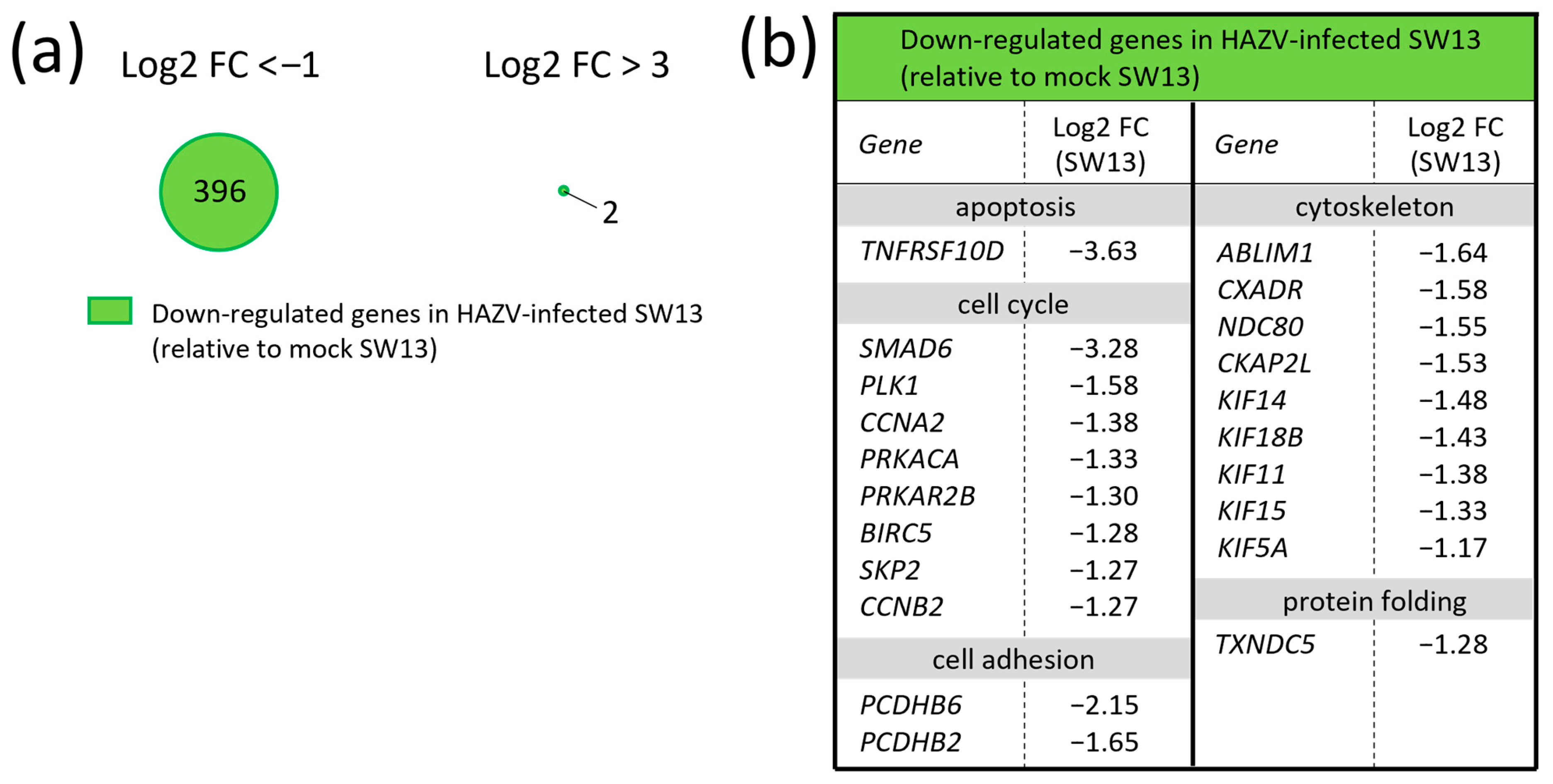 3.3. HAZV Infection Down-Regulates Cell-Cycle- and Cytoskeleton-Related Genes