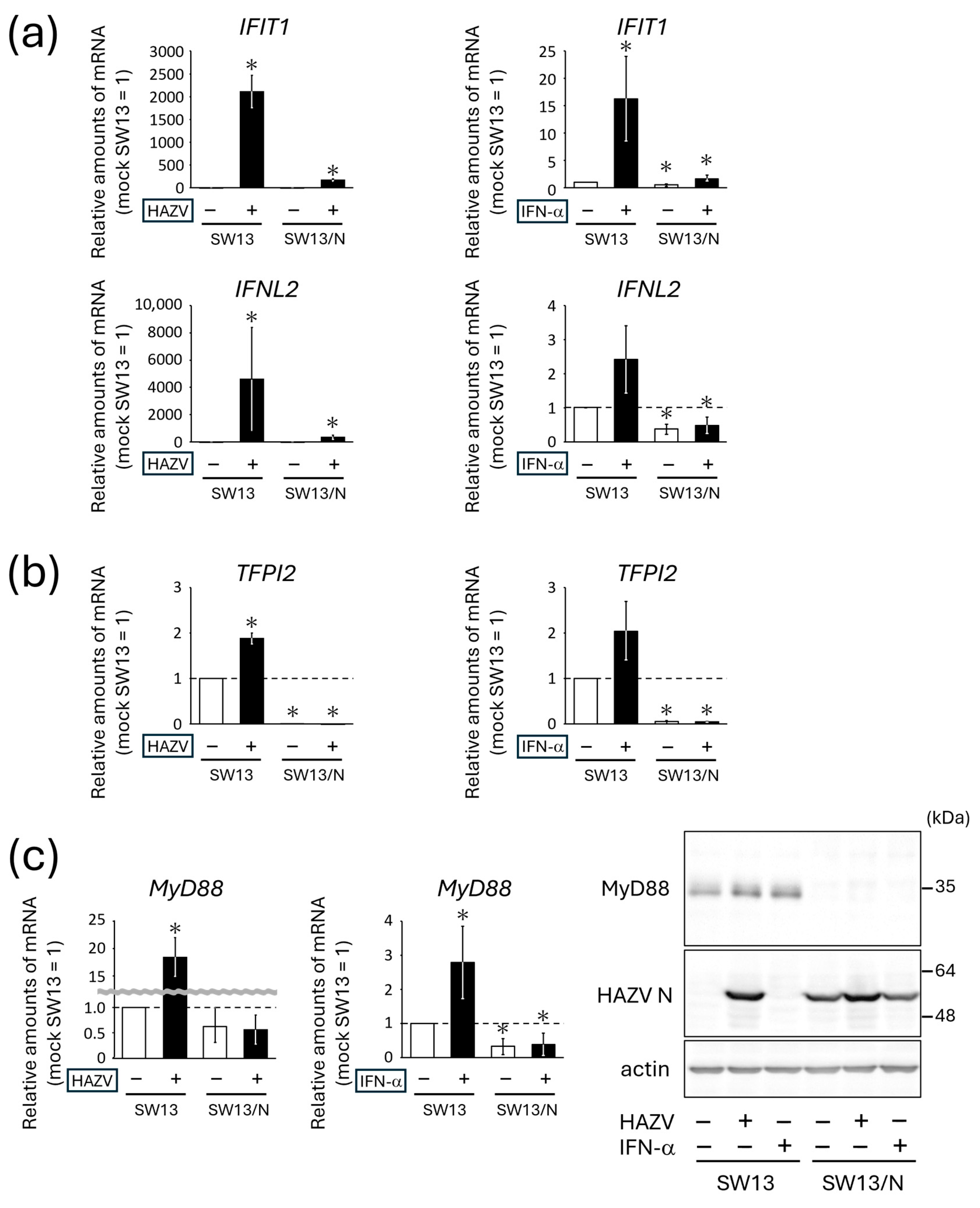 3.2. HAZV N Protein Blocks Expression of Immune-Response-Related Genes