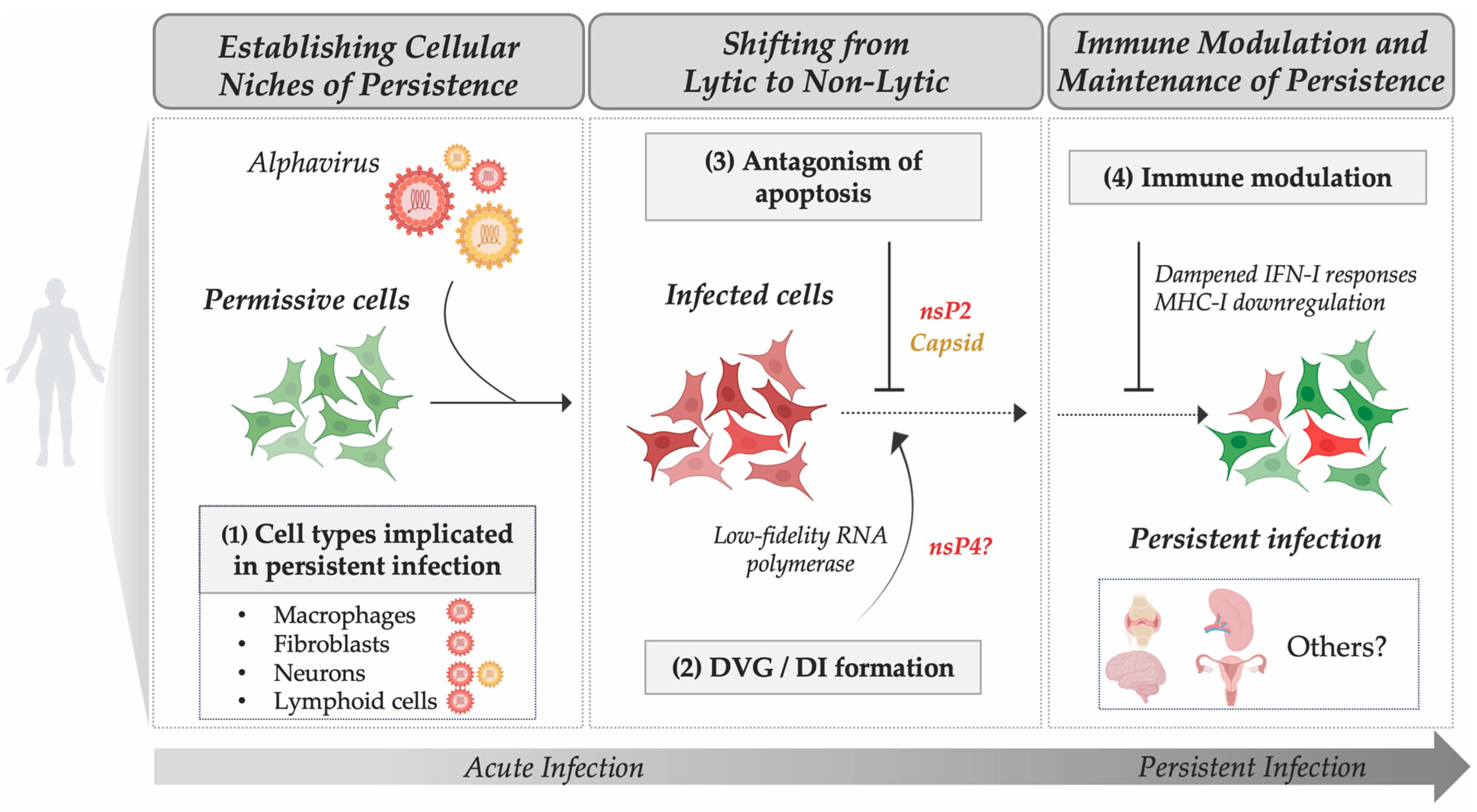 4. Virus–Host Interactions in Alphavirus Persistence: Shifting from Lytic to Non-Lytic Infection