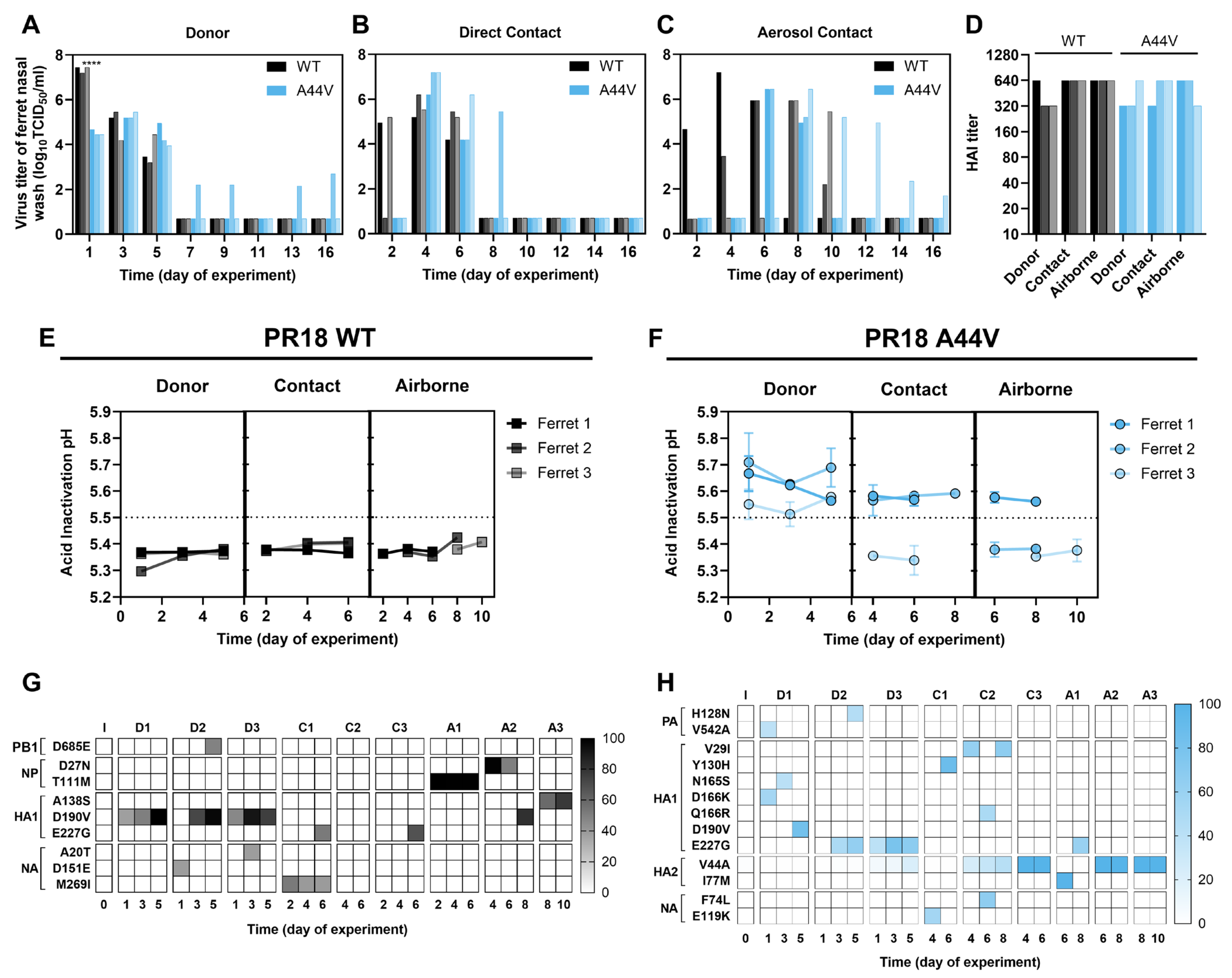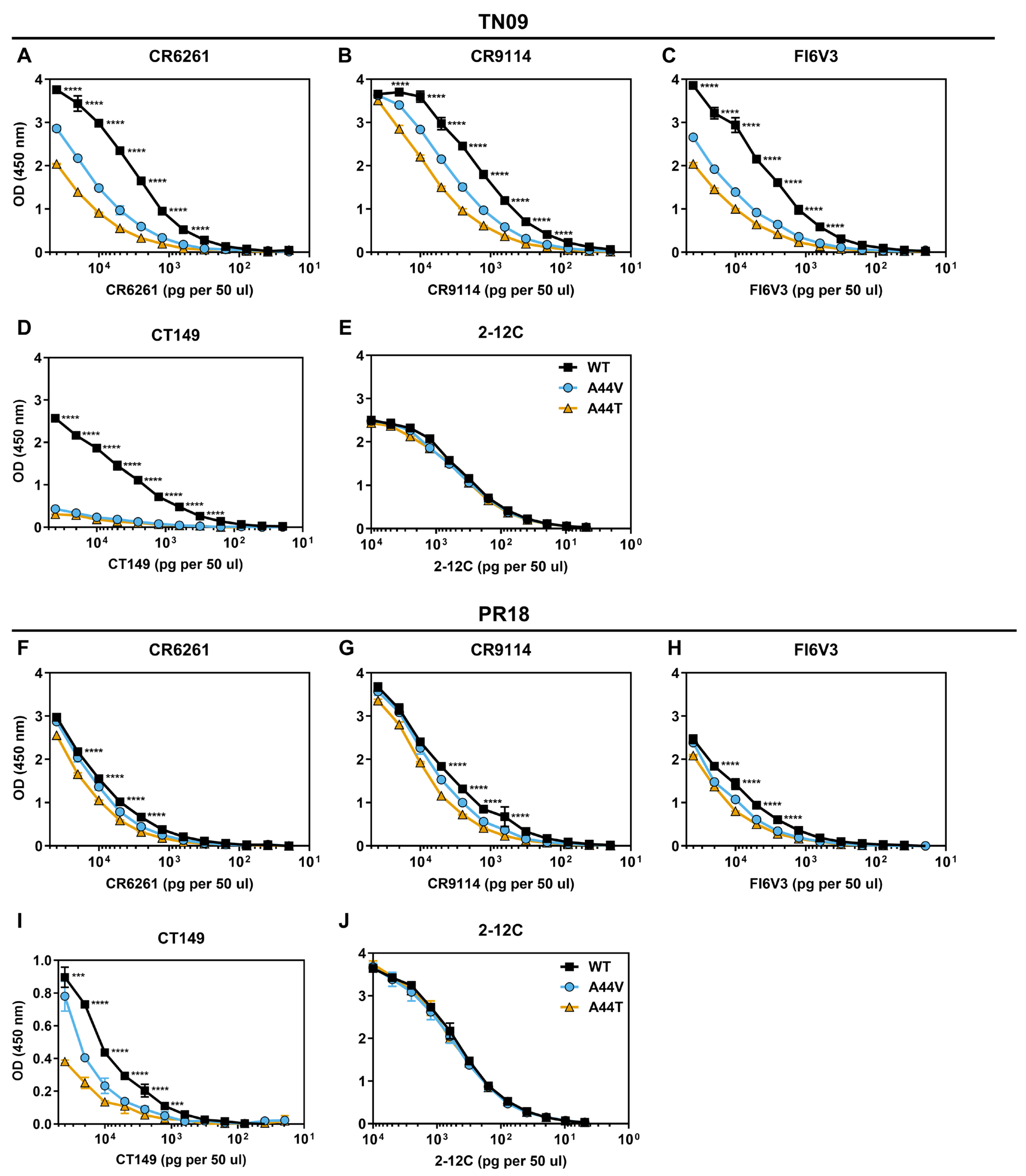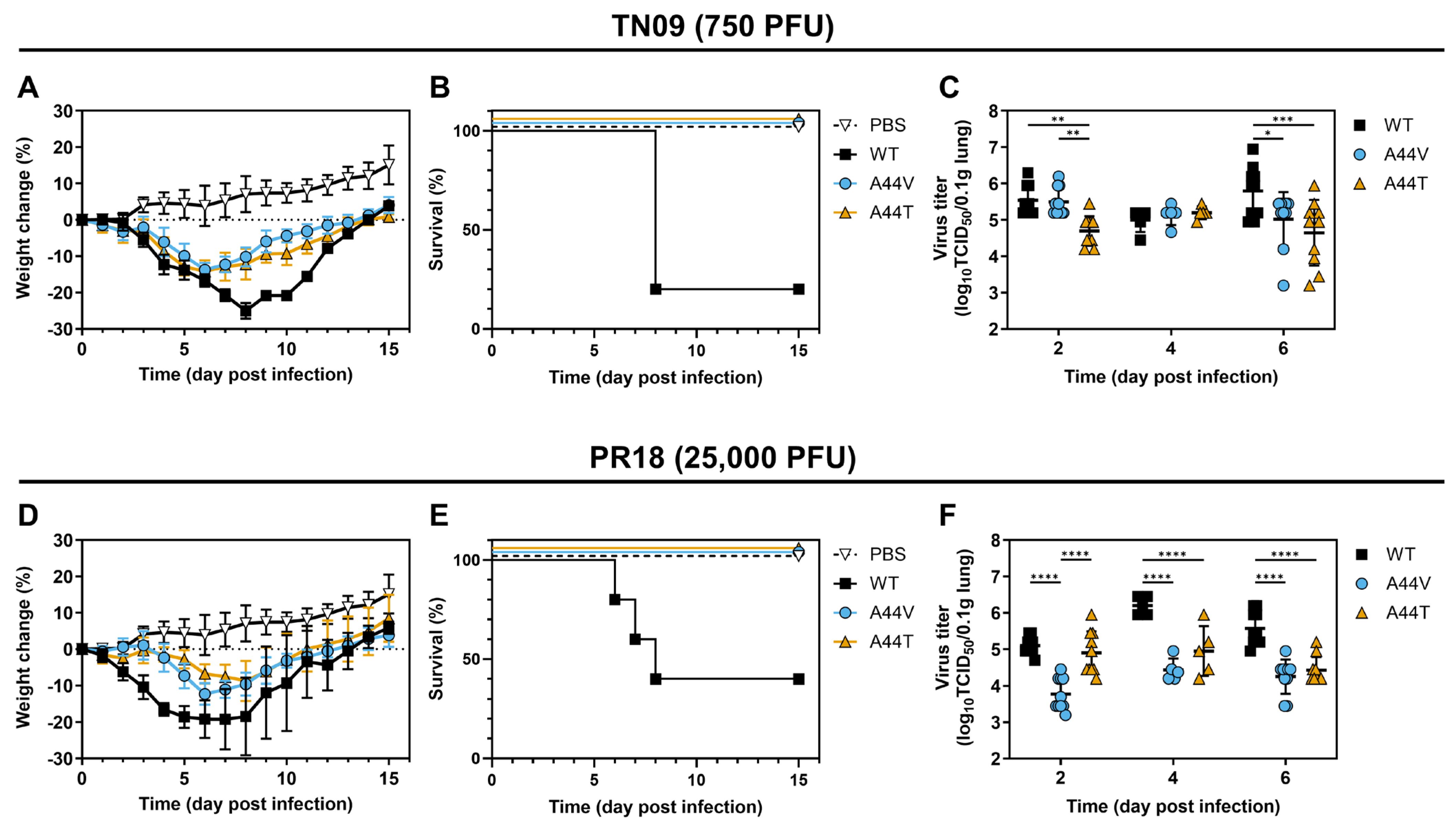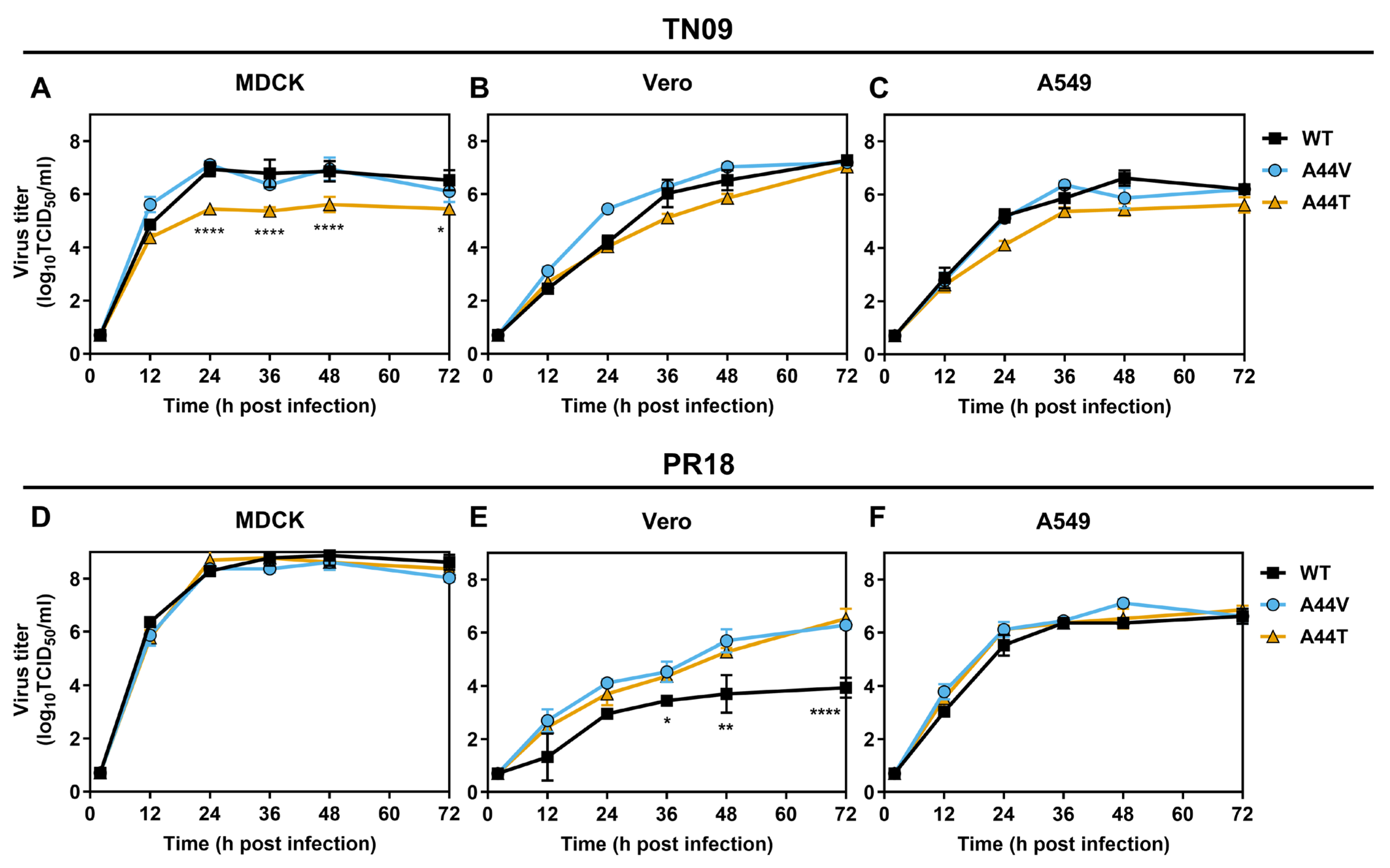 | PR18 | HA2-A44V | 234.1 **** | 247.2 *** | 138.6 ** |