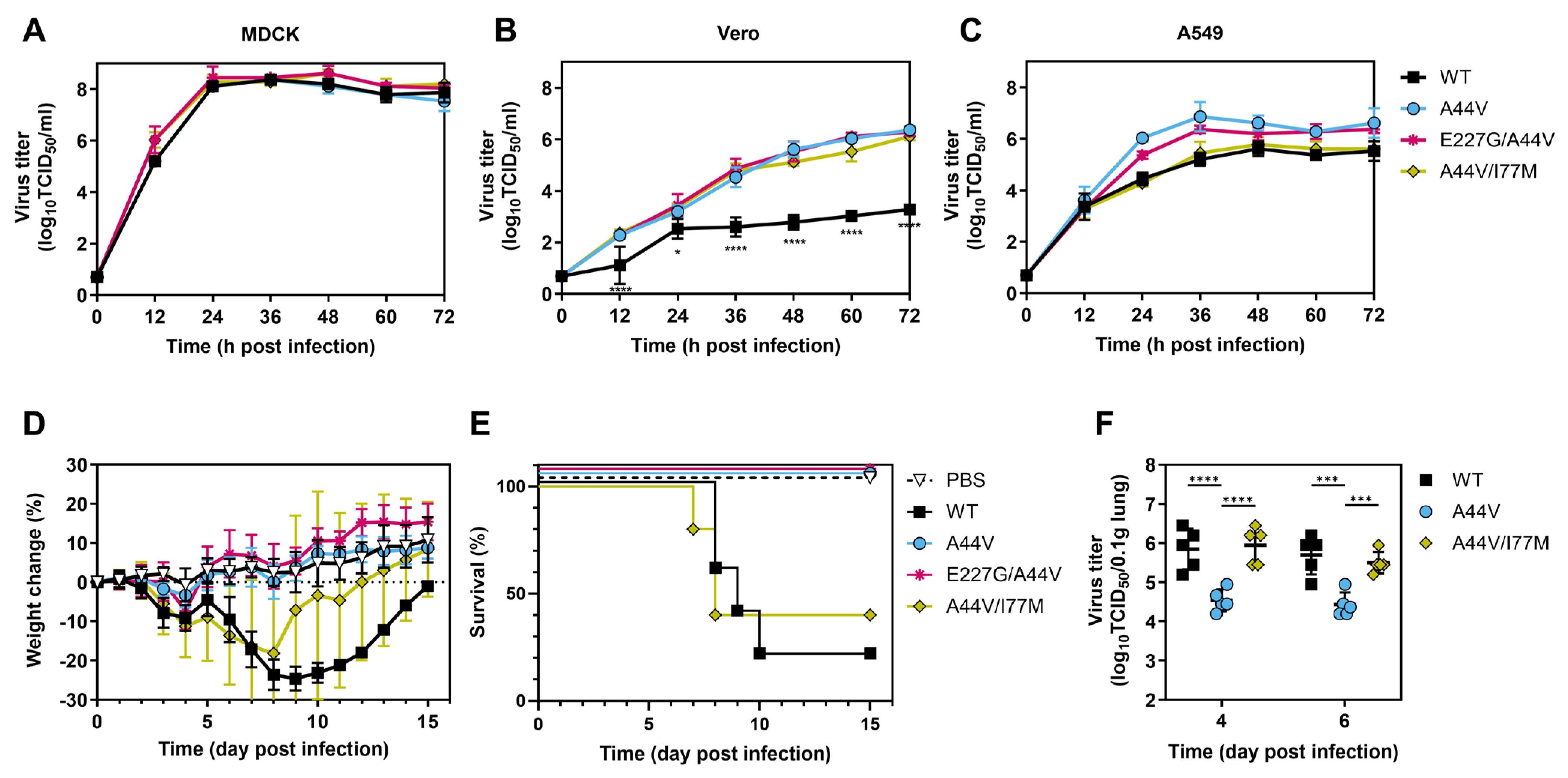 | Virus | HA (Mutation) | MDCK (TCID50/mL) | Vero (TCID50/mL) | A549 (TCID50/mL) |