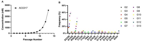 3.6. In Vitro Induction of ACC017-Resistant Strains and Analysis of Drug Resistance