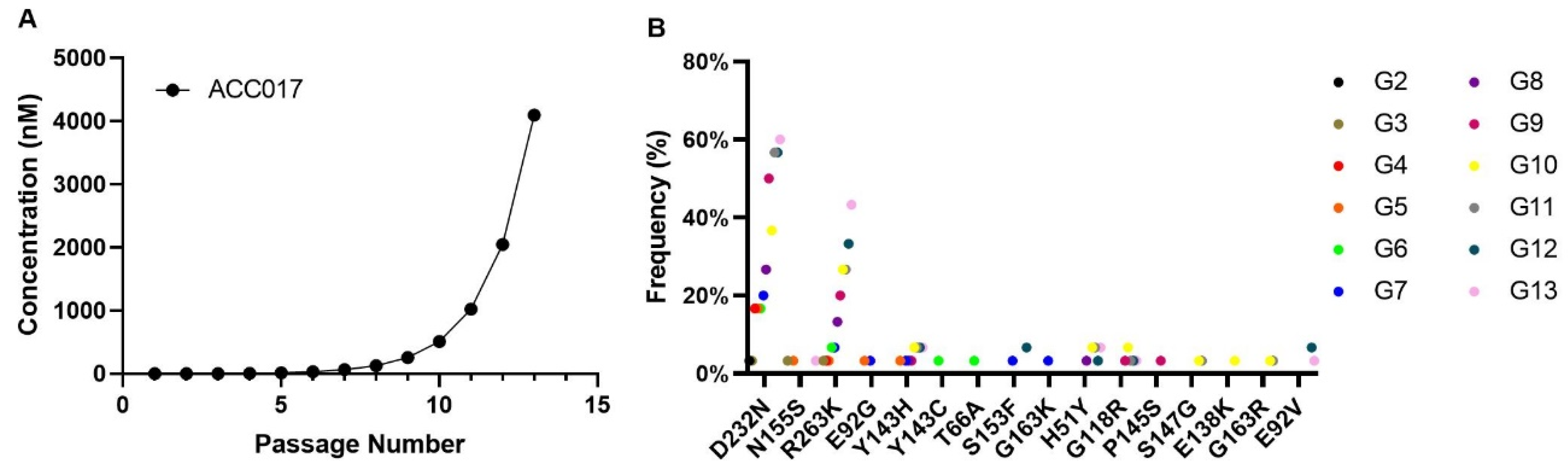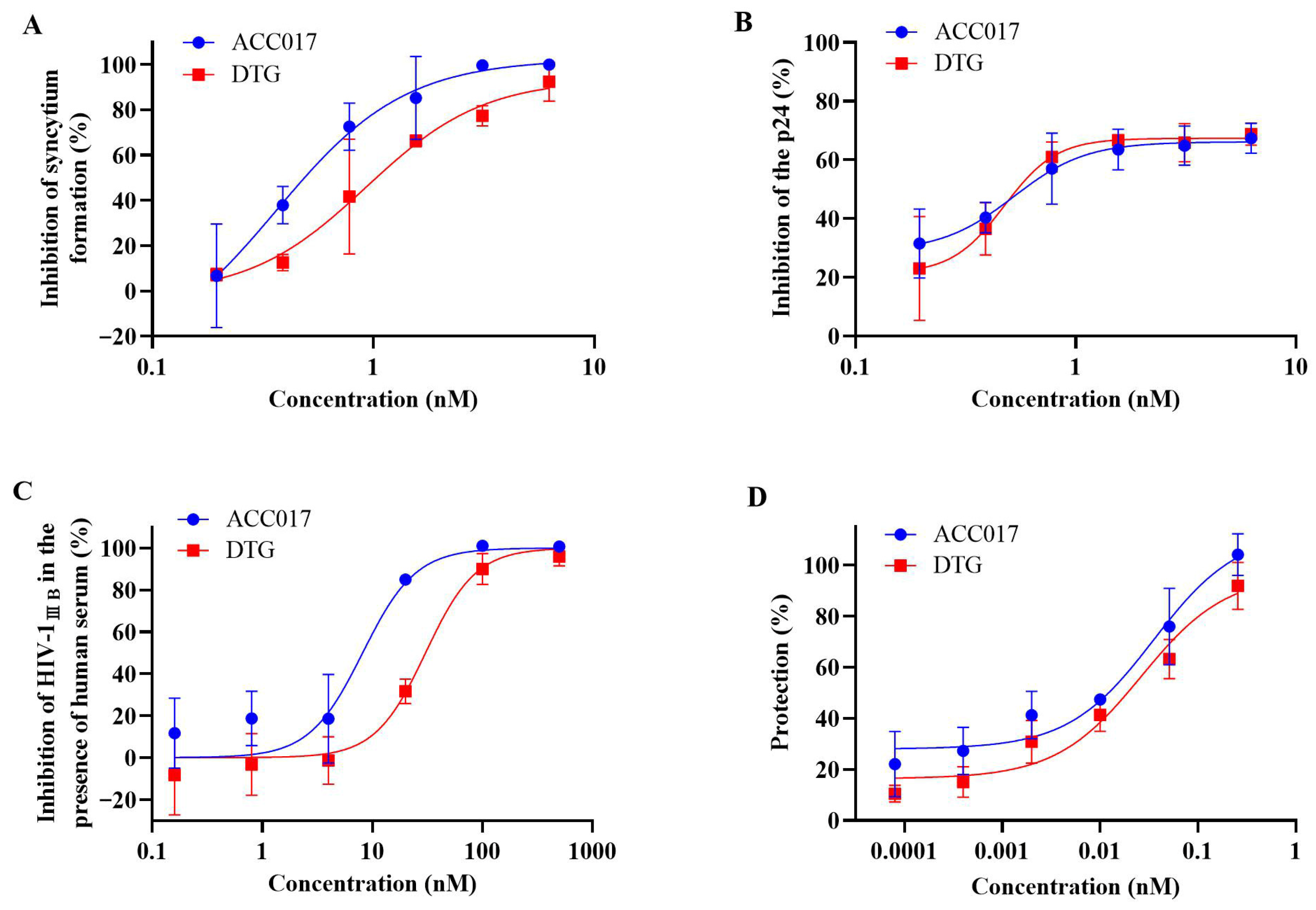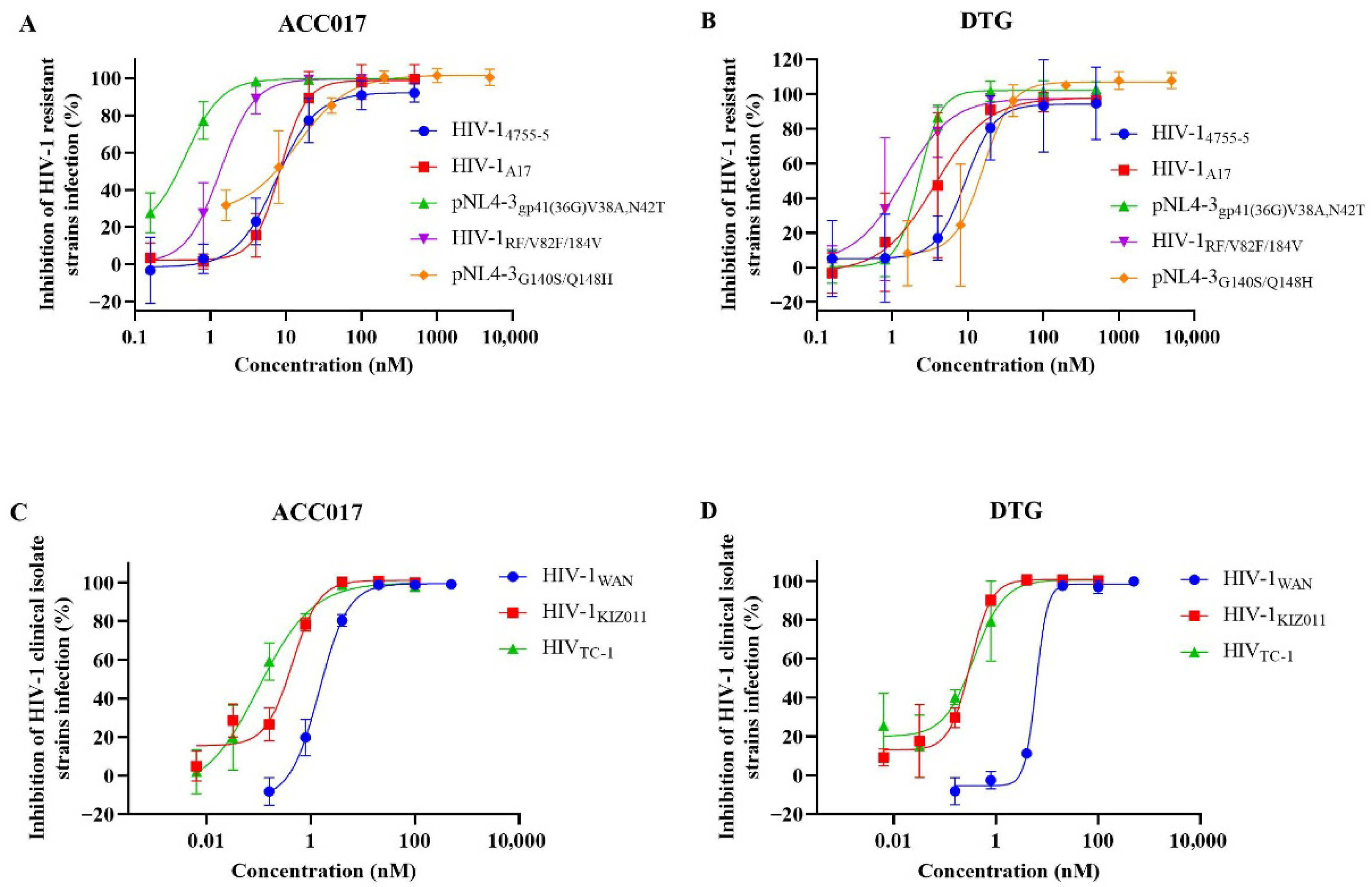 | ACC017 + ACC007 | INSTIs | ACC017 | 2.61 | 4.07 | 6.48 | 8.97 | 0.38 ± 0.12 | synergism |