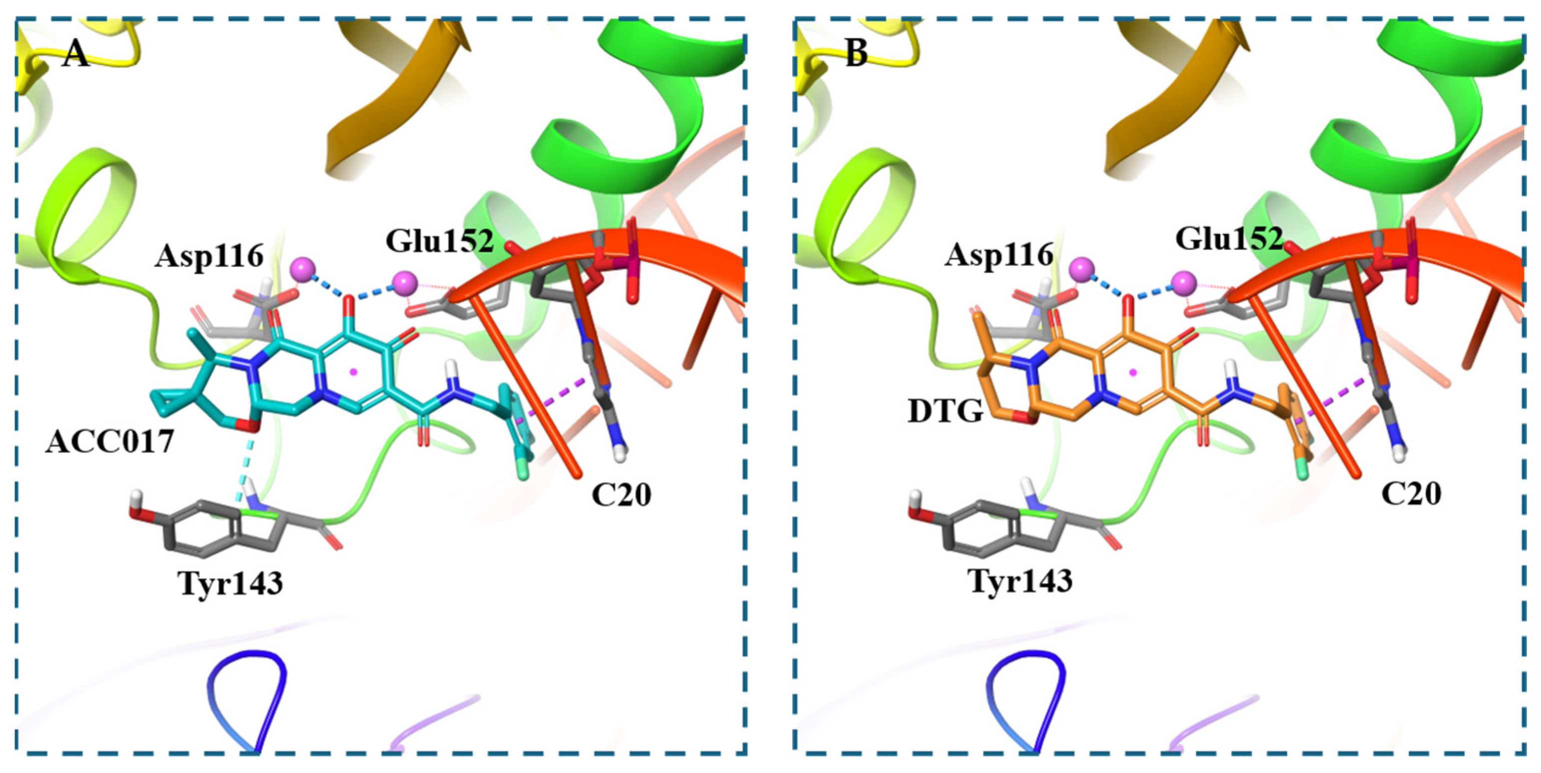 - Smith, S.J.; Zhao, X.Z.; Passos, D.O.; Lyumkis, D.; Burke, T.R., Jr.; Hughes, S.H. HIV-1 Integrase Inhibitors That Are Active against Drug-Resistant Integrase Mutants. Antimicrob. Agents Chemother. 2020, 64, e00611–e00620. [Google Scholar] [CrossRef]