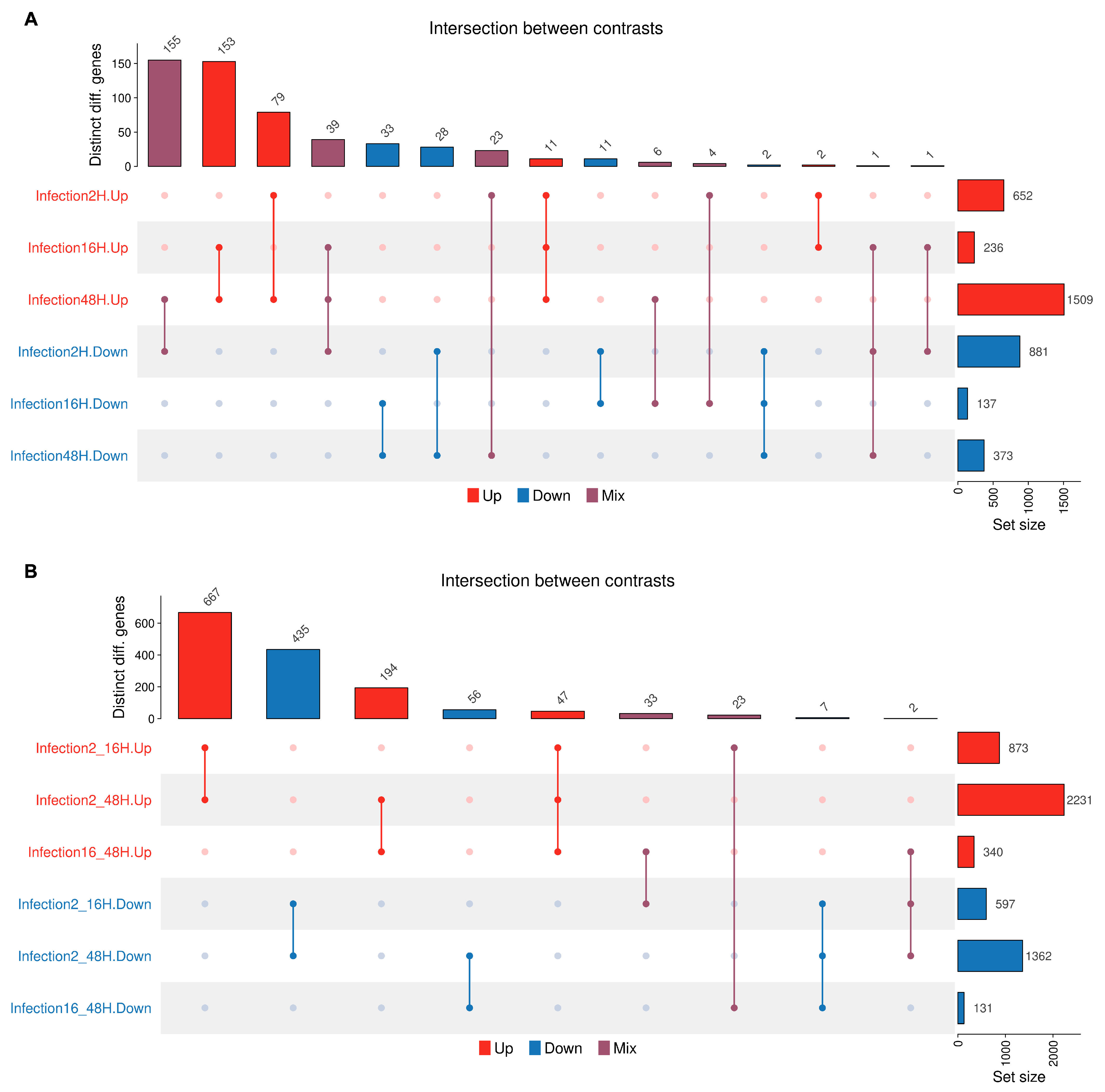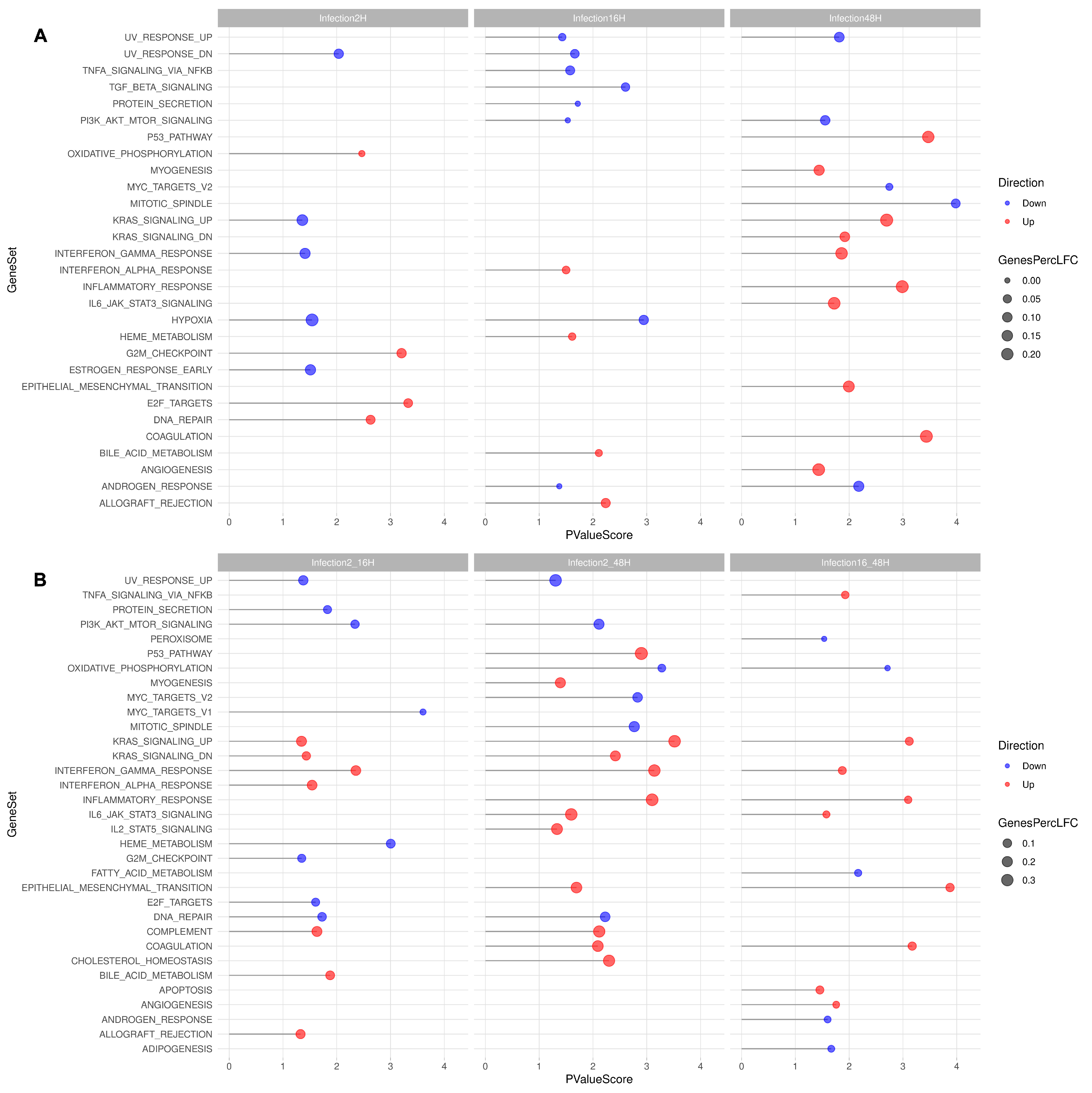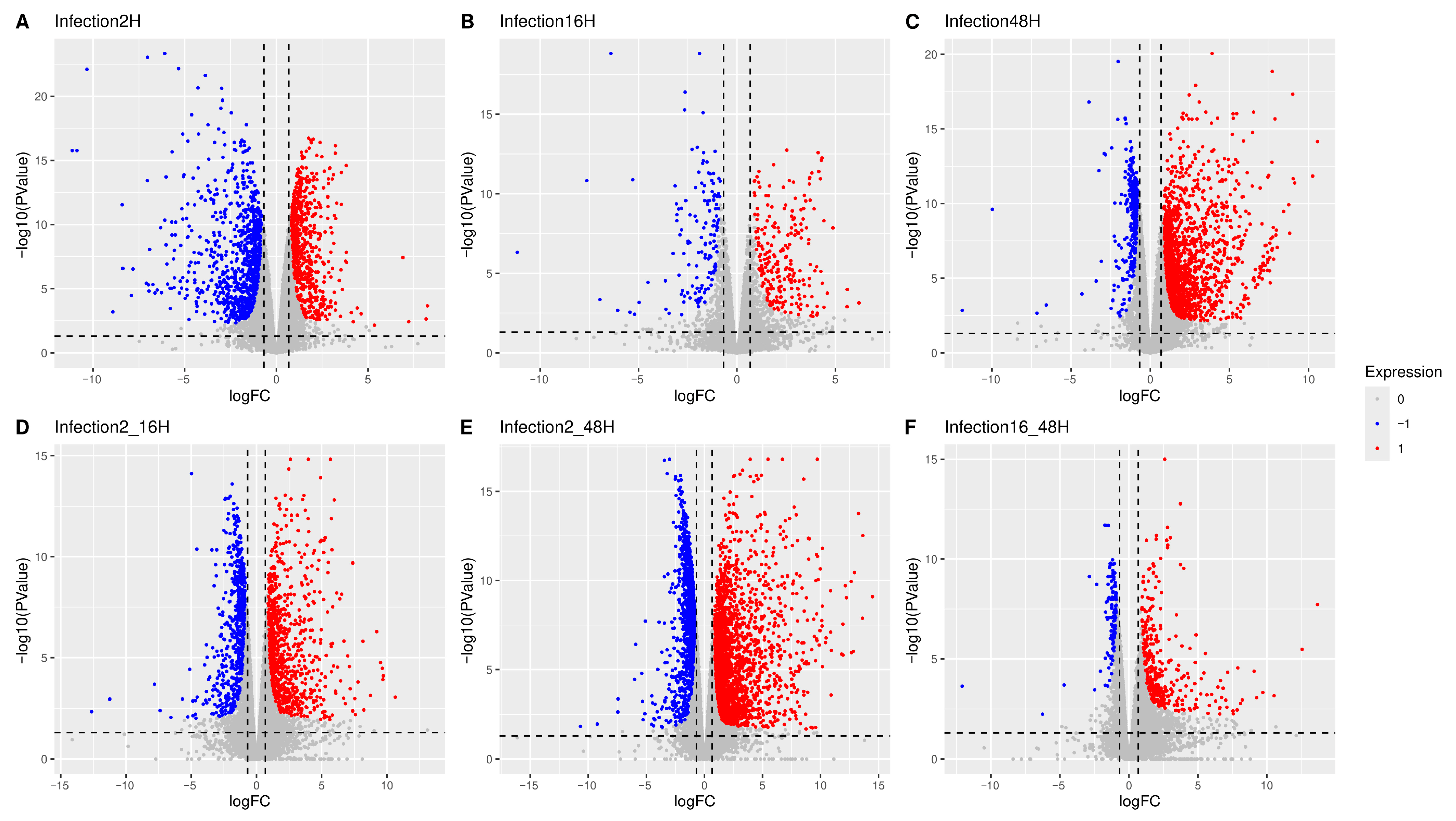 | 48 hpi | 1 | 87 | 0.65 | PECAM1, VCAN, CD48, CCR1, SLAMF7, CCL2, IL1B, TNF, CTSK, C3AR1, SDC4, SDC1, TLR2, CD38, CD86, CCL5, CTSS, CXCR4, NR4A2, NR4A1, MMP9, PTGS2, SP1, ANPEP, S100A4, BIRC3, SLA, EPCAM, P2RX7, PTGER4, CMKLR1, IL32, TPH1, MMP14, IRF5, GPR183, CSF3R, KLRK1, PDCD1, PLAUR, C5AR1, LY96, TLR8, MSR1, PLAU, SELL, ITGA5, TNFRSF1B, TLR1, FPR1, IL1R2, ACE, OLR1, PPBP, IL1R1, IDO1, CASP1, SELP, FGF2, CXCL1, PF4, CD70, SLAMF1, IL3RA, NNMT, COL2A1, TGFBI, TNFSF9, IRAK2, CD55, JAG1, ADAMDEC1, CD14, BCL2L11, KCNN4, MARCO, ECM1, GNA15, PDPN, IL13RA1, TNFAIP2, IL6ST, ADAM9, GP1BA, ETV5, BANK1, CSF2RA | Immune system Signal transduction Cytokine signaling Innate immune system Signaling by interleukins Hemostasis | 2.00 |