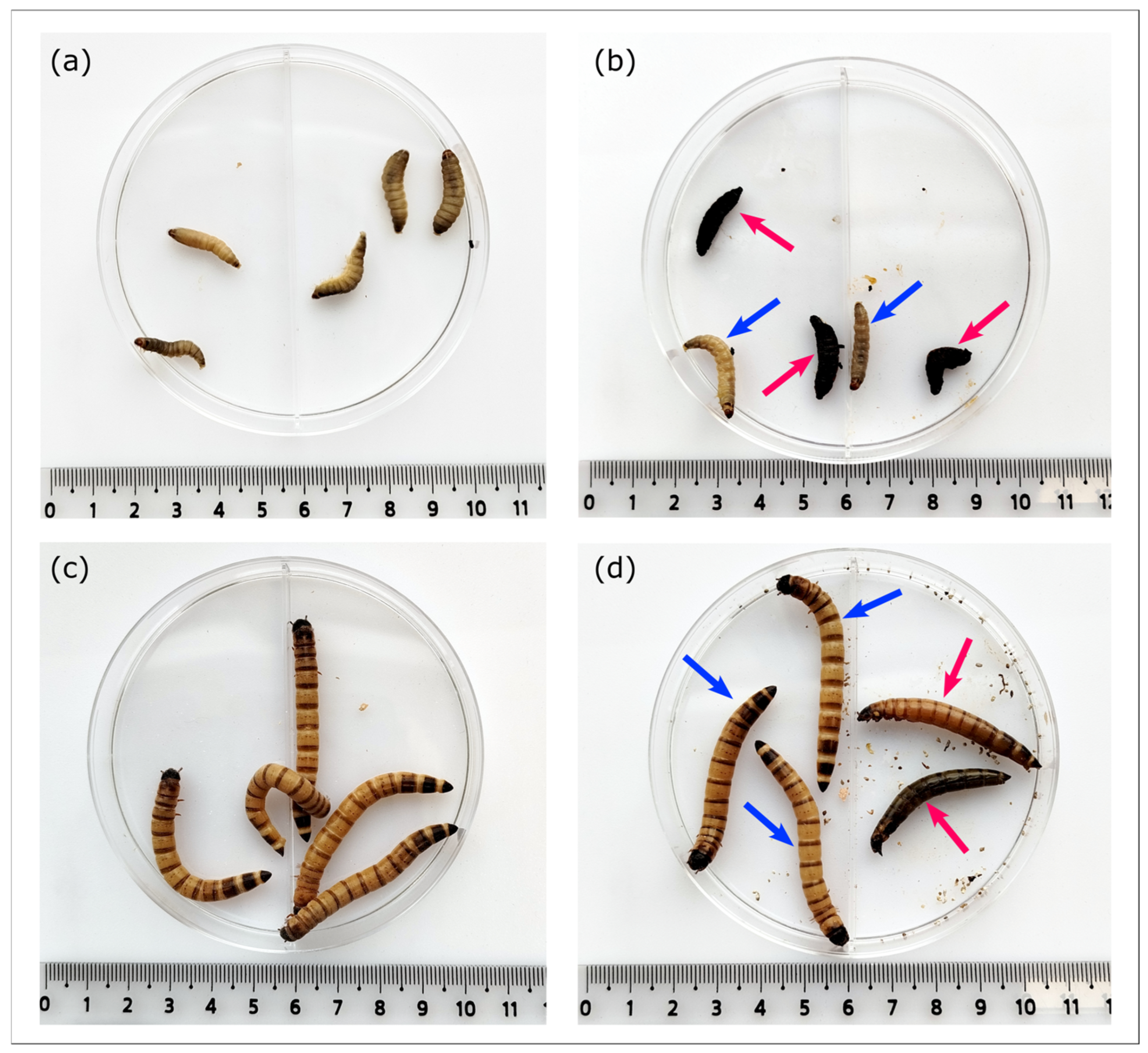 - Tsai, C.J.-Y.; Loh, J.M.S.; Proft, T. Galleria Mellonella Infection Models for the Study of Bacterial Diseases and for Antimicrobial Drug Testing. Virulence 2016, 7, 214–229. [Google Scholar] [CrossRef]