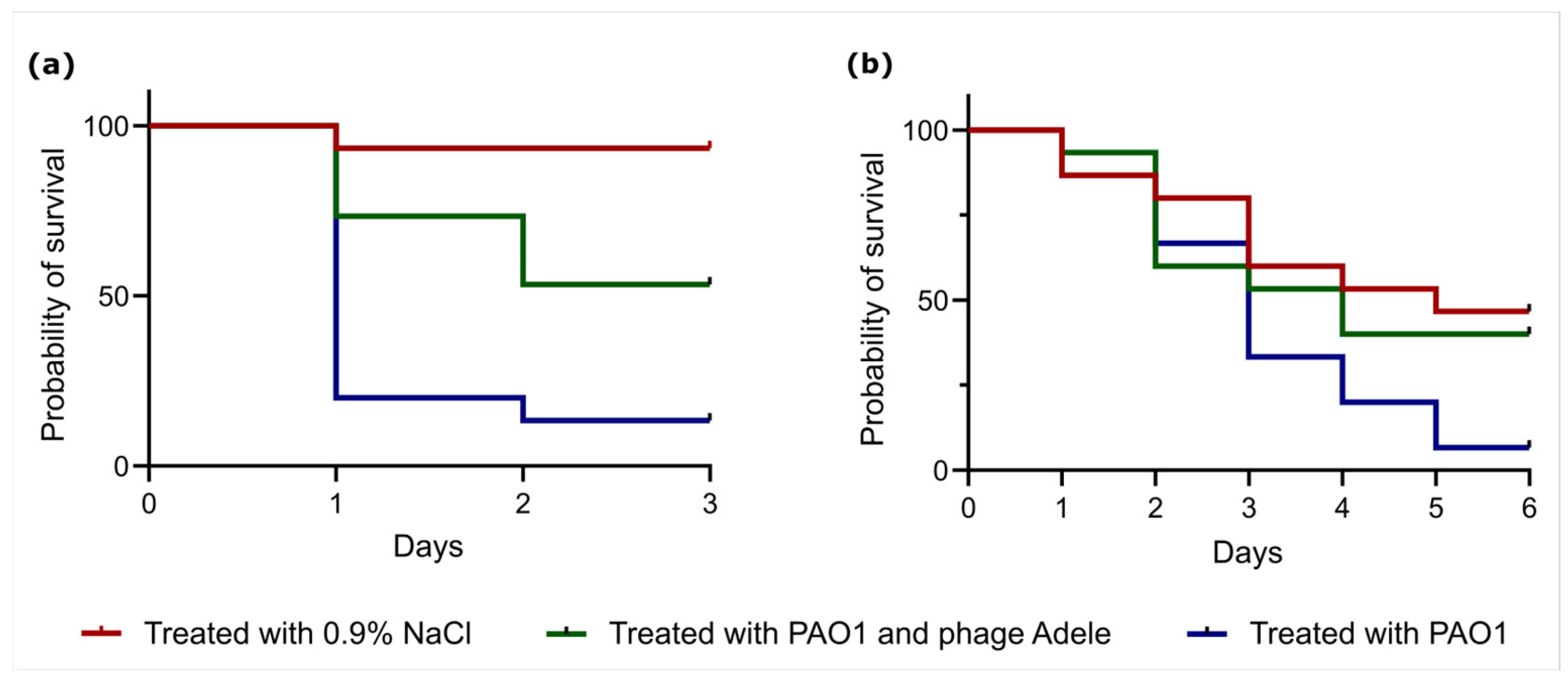 2.7. Testing Phage Activity in Vivo Using Galleria Mellonella and Zophobas Morio Models