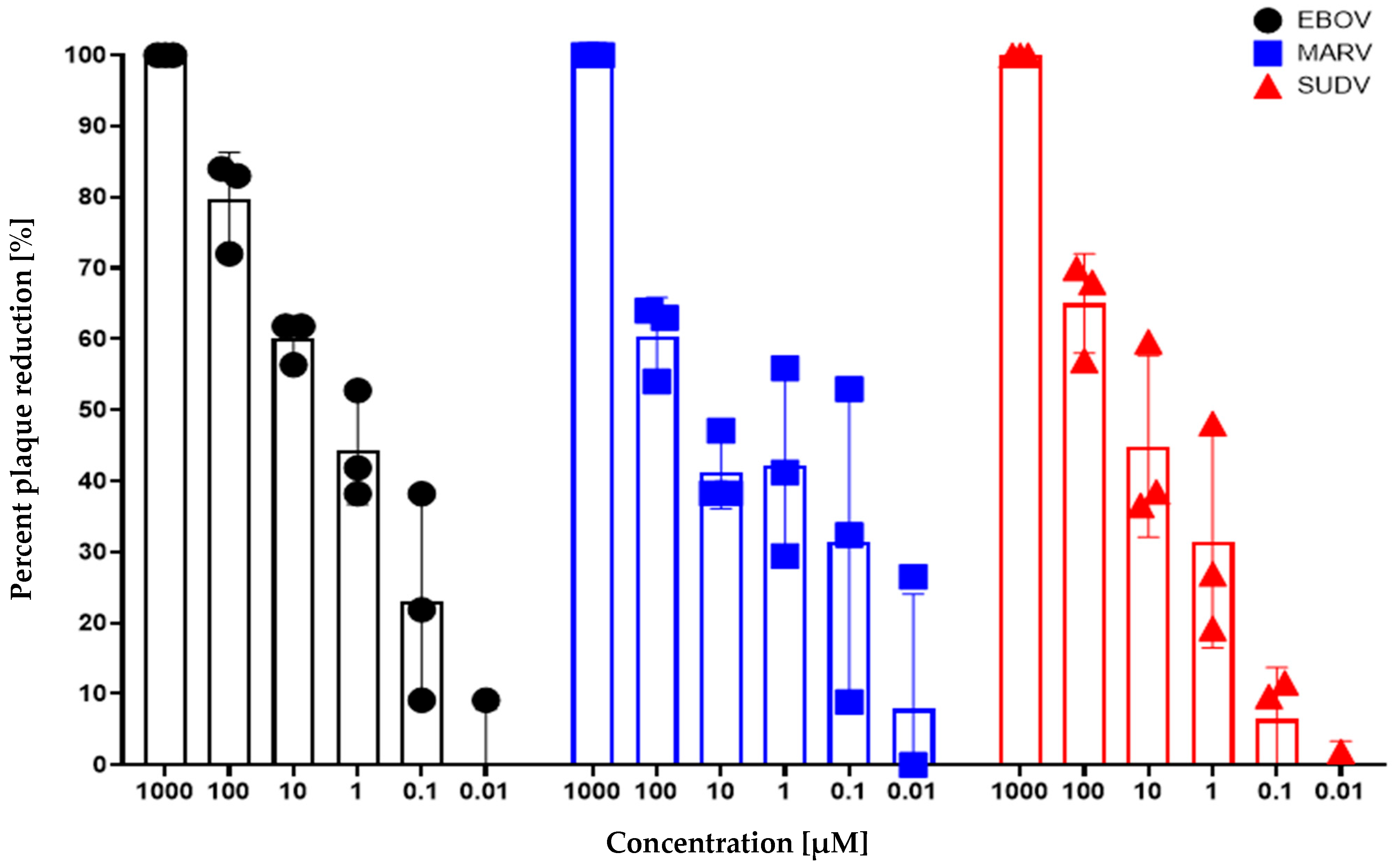 - Edwards, M.R.; Basler, C.F. Current status of small molecule drug development for Ebola virus and other filoviruses. Curr. Opin. Virol. 2019, 35, 42–56. [Google Scholar] [CrossRef] [PubMed]