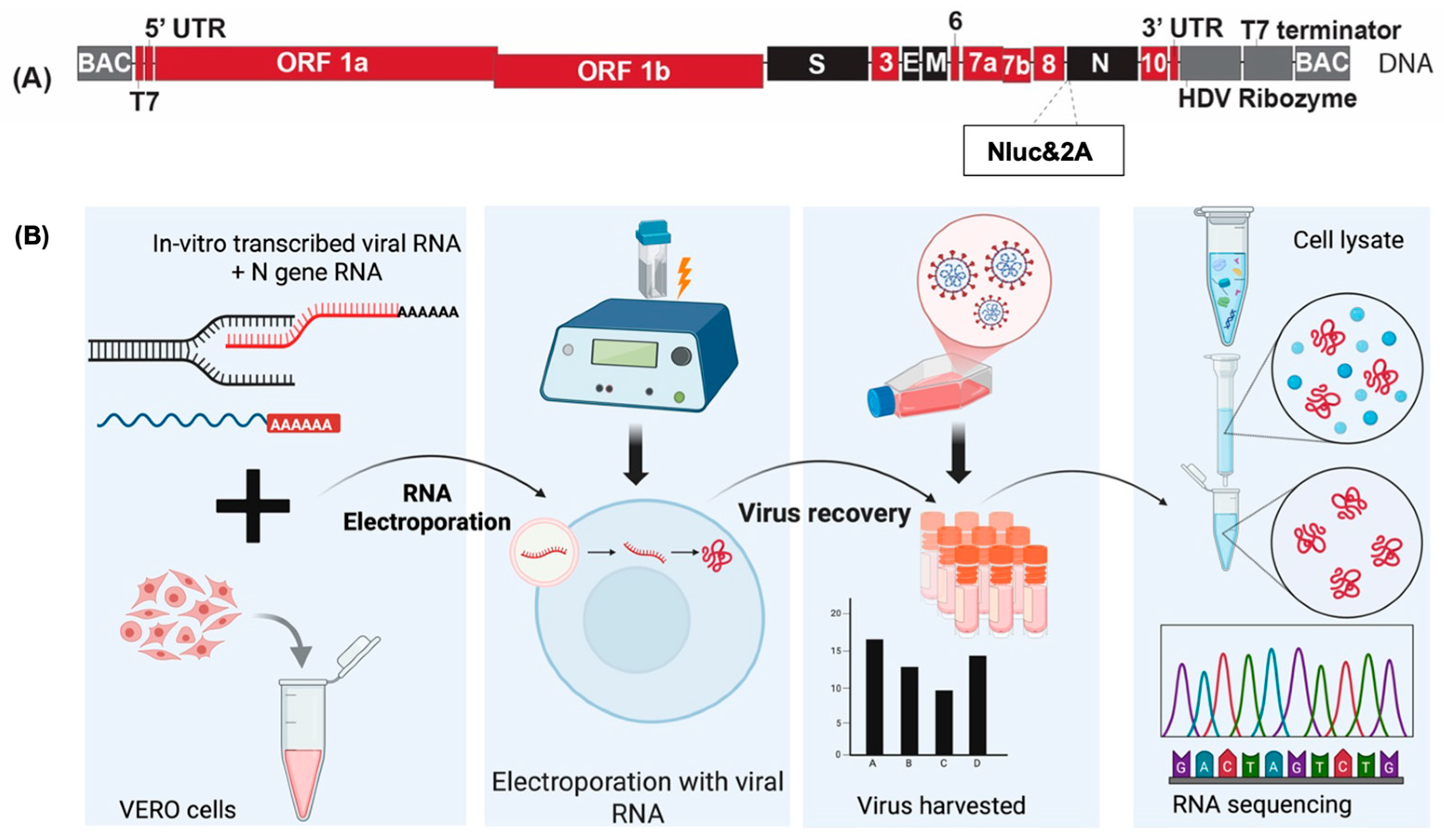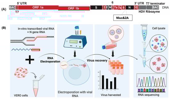 - Wang, W.; Peng, X.; Jin, Y.; Pan, J.A.; Guo, D. Reverse genetics systems for SARS-CoV-2. J. Med. Virol. 2022, 94, 3017–3031. [Google Scholar] [CrossRef]