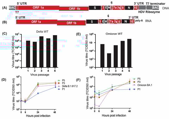 3.1. Generation of Wild-Type SARS-CoV-2 Delta and Omicron Molecular Clones