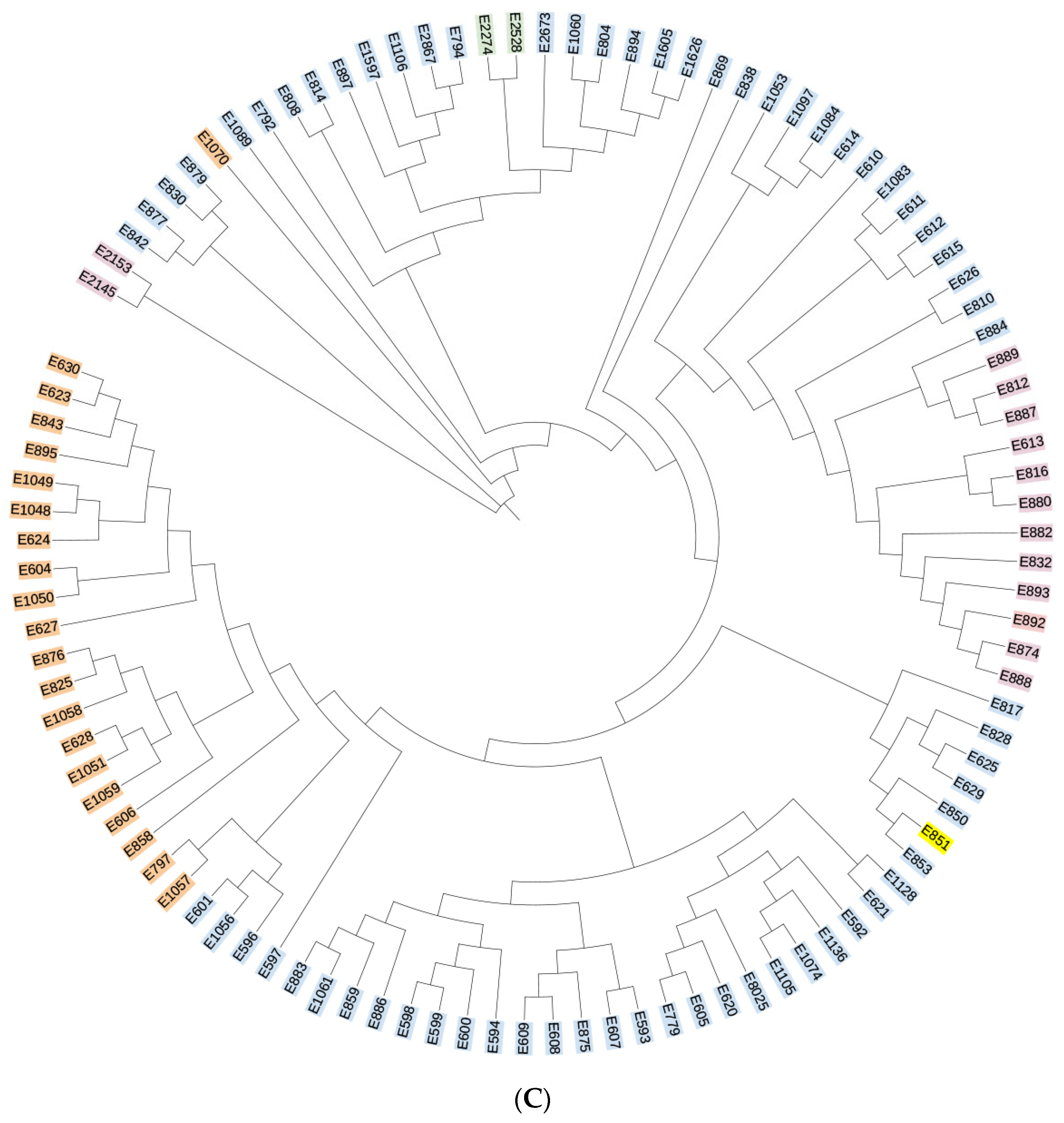 3.5. Analysis of the Amino Acid Composition of HIV-1 Gene Fragments