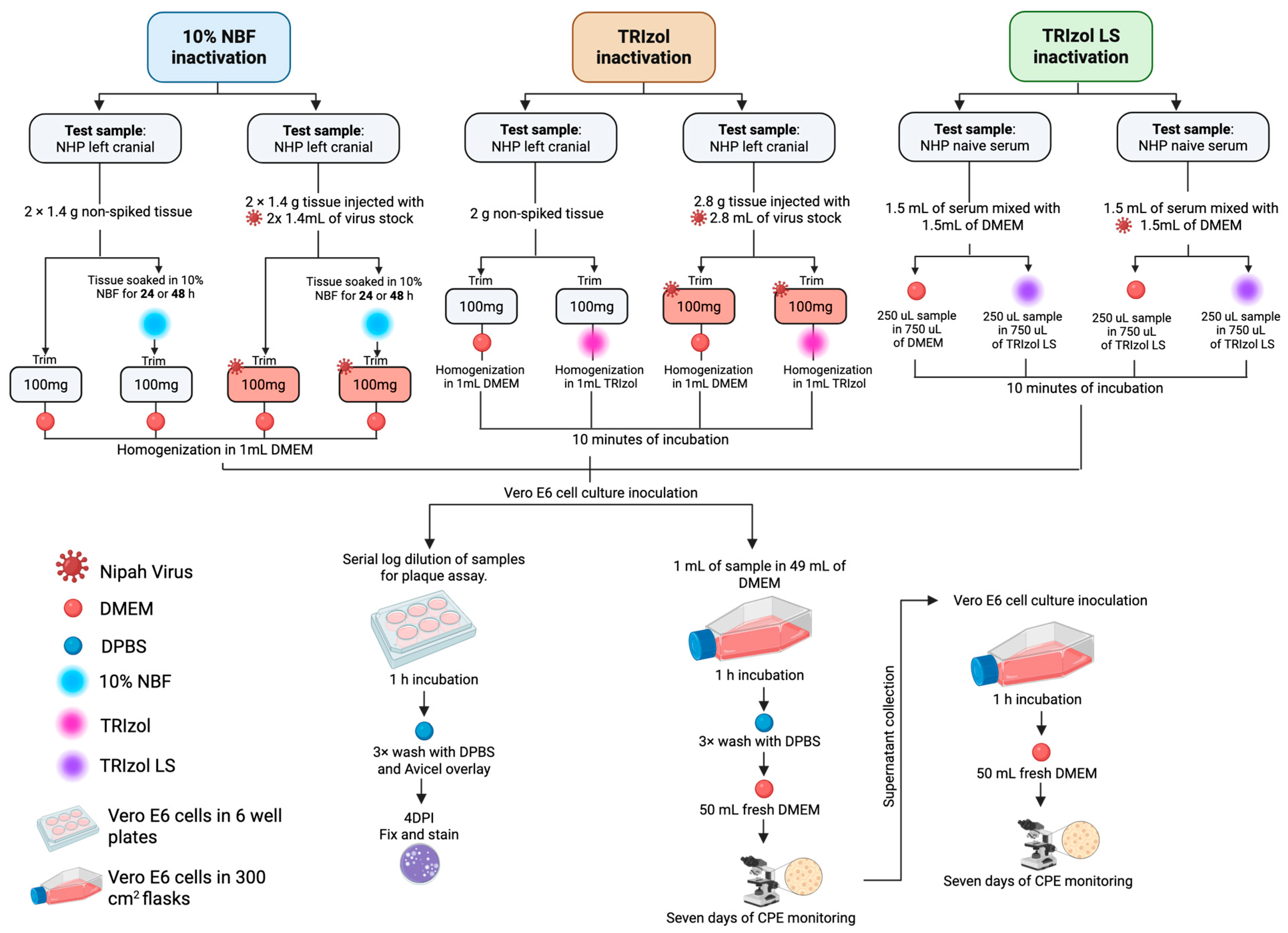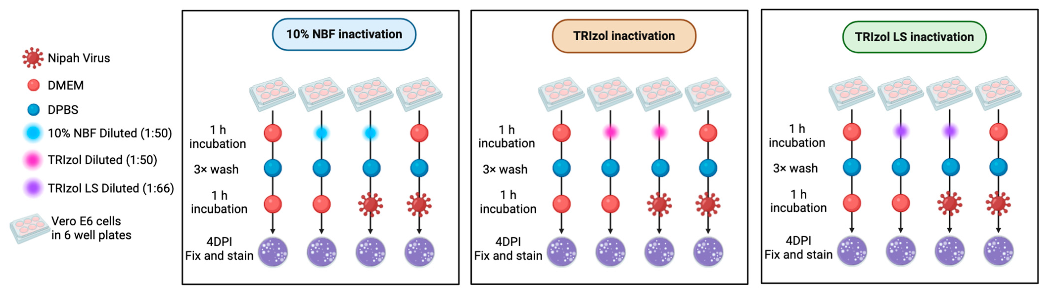 2.4. Chemical Inactivation of NiV-Infected Samples