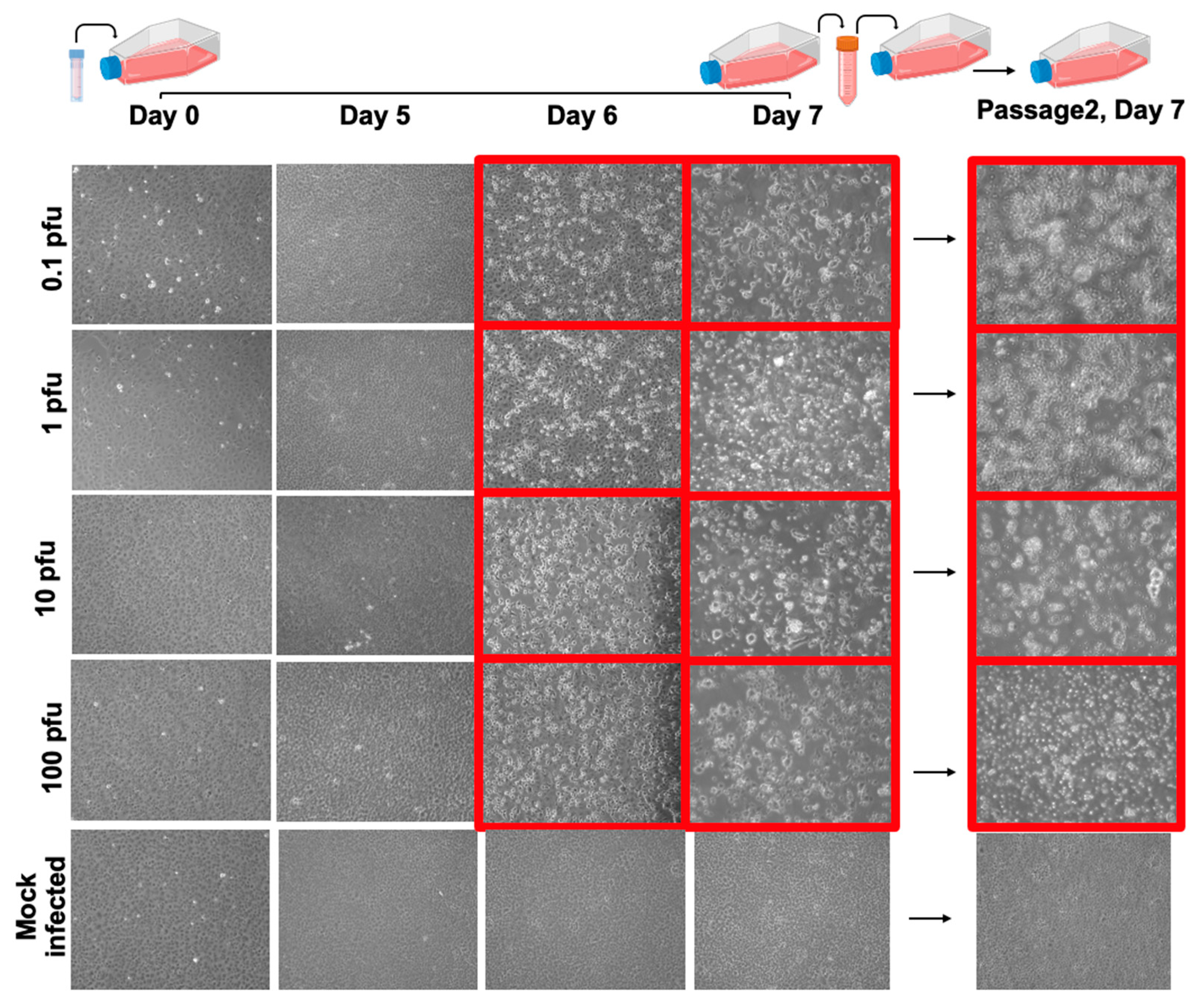 2.5. Determination of Viral Titer by Plaque Assay