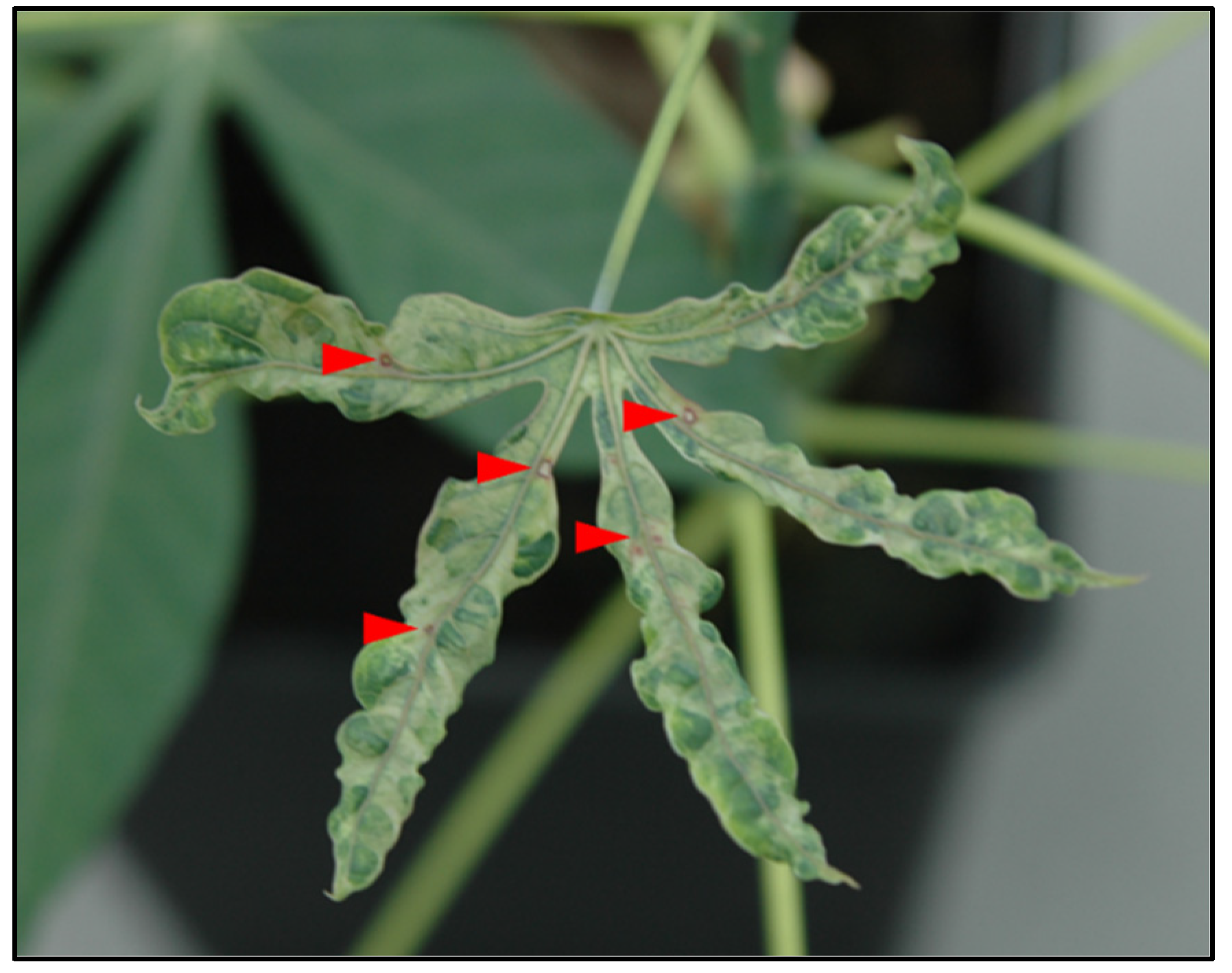 - Jimenez, J.; Caicedo, S.; Pardo, J.M.; Gil-Ordóñez, A.; Alvarez-Quinto, R.; Mollov, D.; Cuellar, W.J. Single torradovirus infections explain the mysterious cassava frogskin disease in the Americas. Sci. Rep. 2024, 14, 29648. [Google Scholar] [CrossRef]