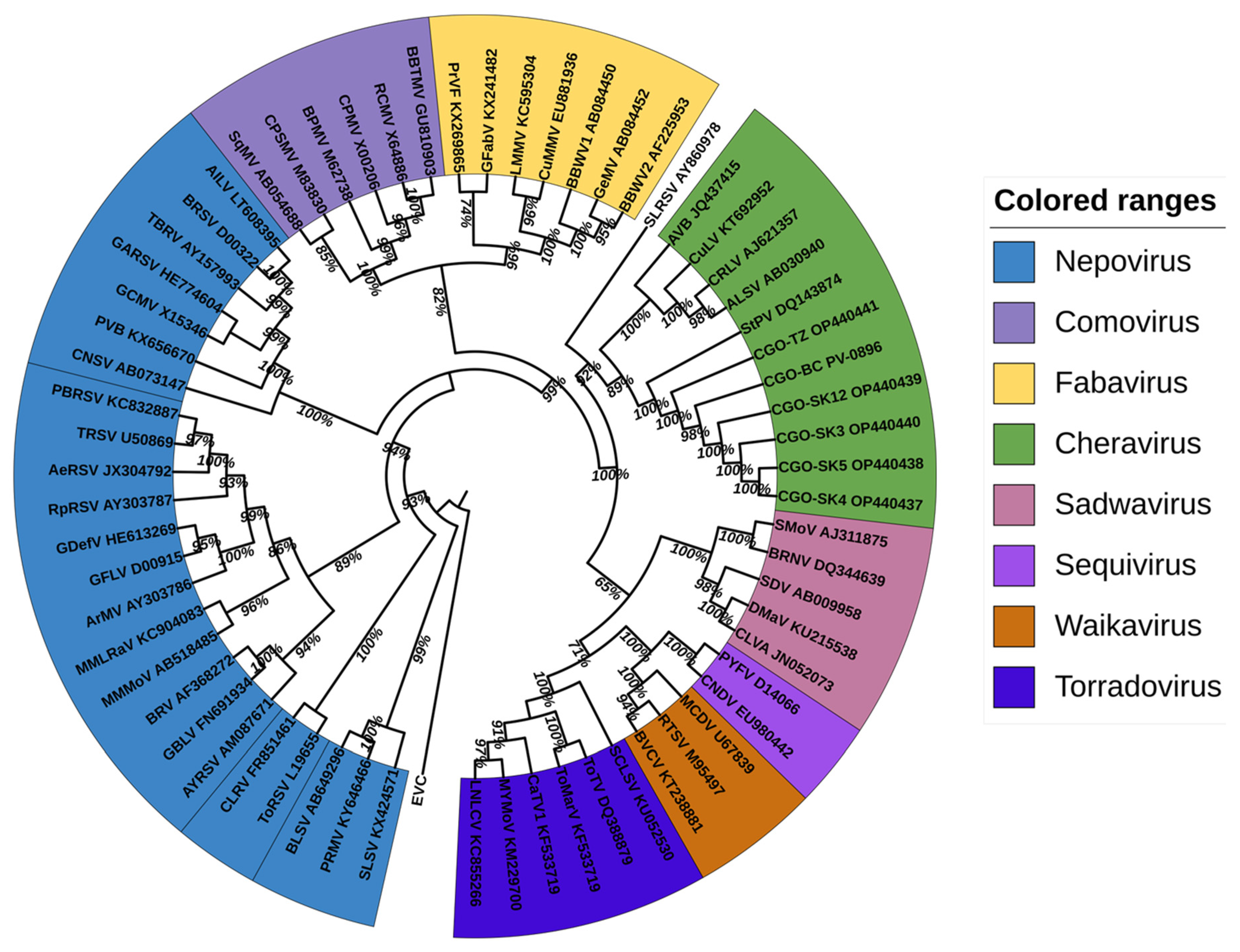 | Cheravirus | Cherry rasp leaf virus | 45% | 46% | 8% | 9% |