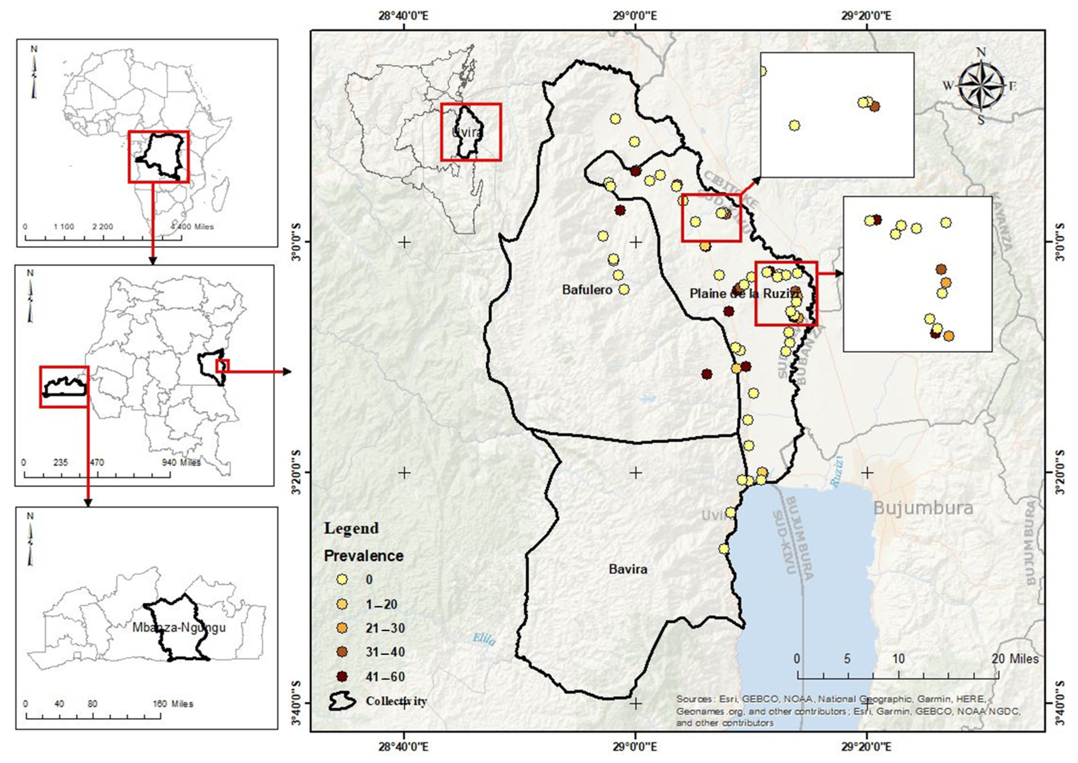 - Kwibuka, Y.; Nyirakanani, C.; Bizimana, J.P.; Bisimwa, E.; Brostaux, Y.; Lassois, L.; Vanderschuren, H.; Massart, S. Risk factors associated with cassava brown streak disease dissemination through seed pathways in Eastern D.R. Congo. Front. Plant Sci. 2022, 13, 803980. [Google Scholar] [CrossRef]