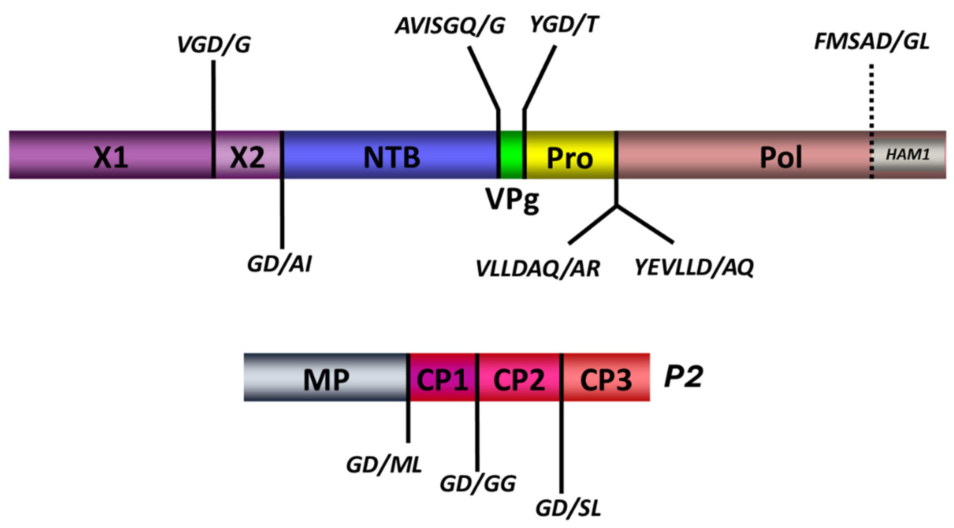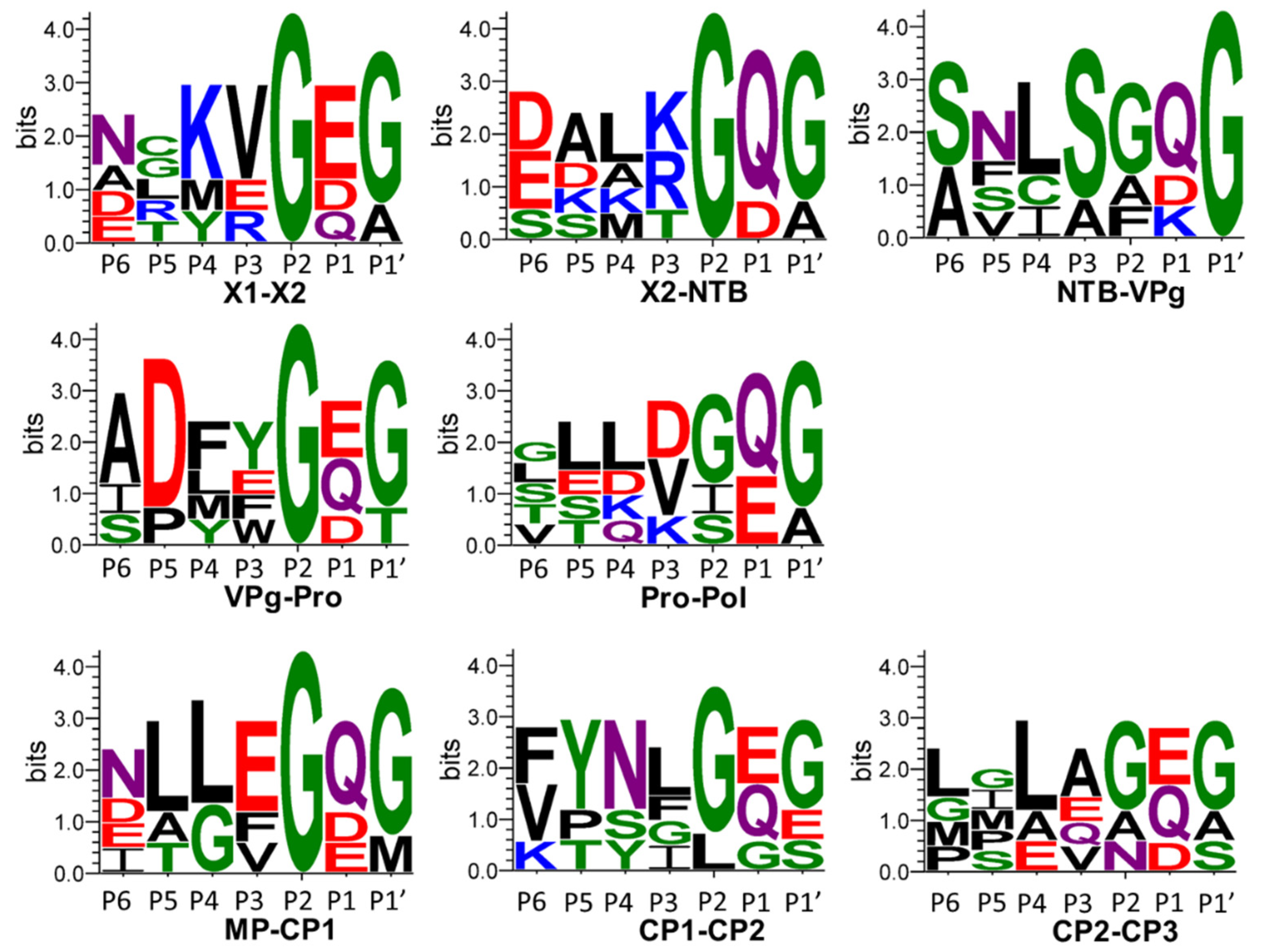 | NTB-VPg | GQ/GD | SSLSAQ/GP | SNLSGD/GA | SNLSGQ/GP | AFCAFK/GE |