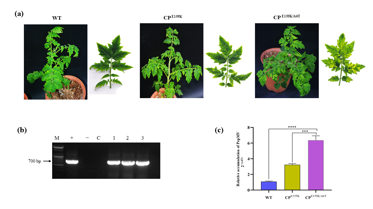 Vo TTB, Tabassum M, Rini IA, Nattanong B, Im H-J, Kim M, Byun H-S, Kwak H-R, Lee S. Mild to Virulent: Coat Protein Mutations Restore Mosaic Symptom Induction in a Korean PepMV Isolate. Viruses. 2026; 18(2):175. https://doi.org/10.3390/v18020175