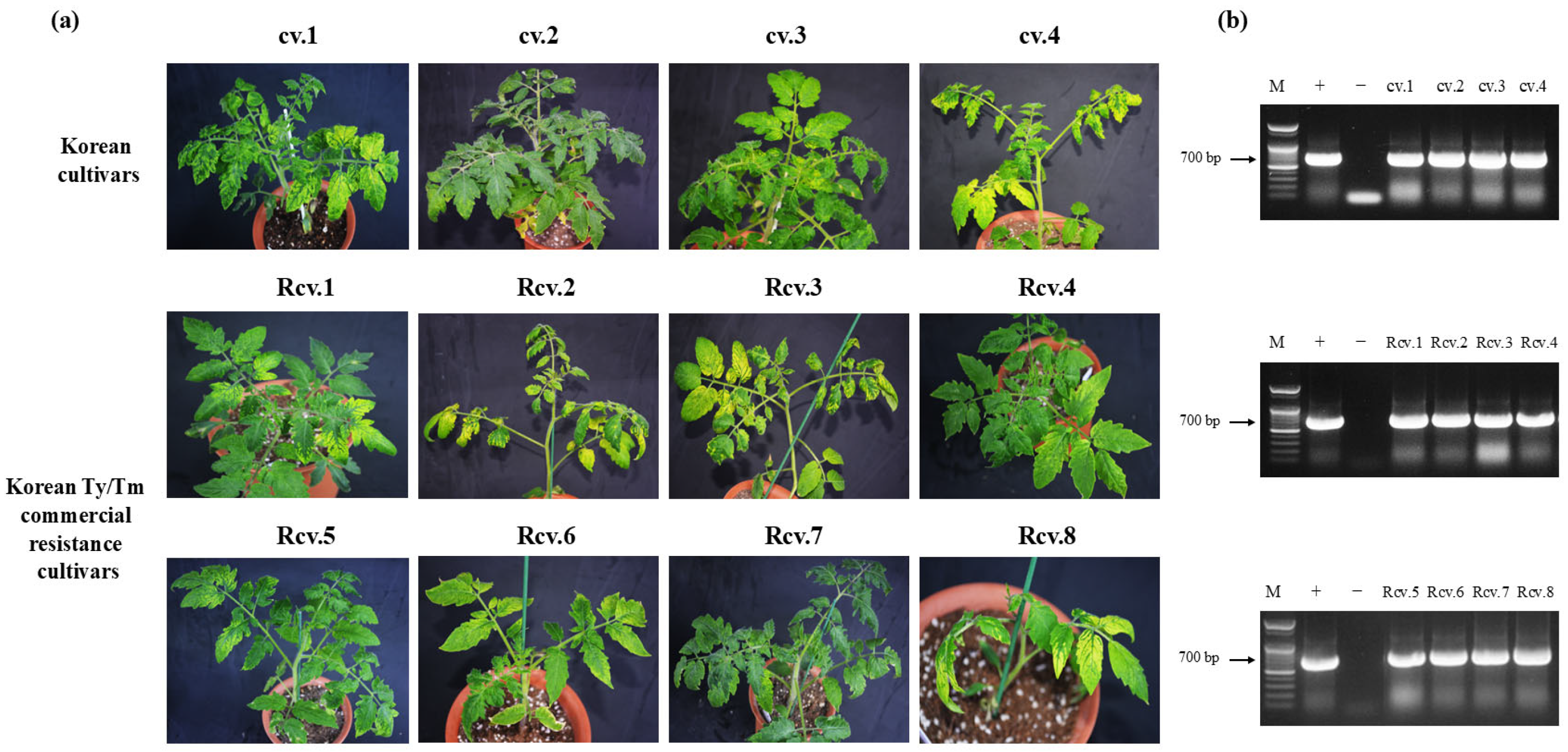 - Cho, I.S.; Chung, B.N.; Yoon, J.Y.; Hammond, J.; Lim, H.S. First Report of Pepino Mosaic Virus Infecting Tomato in South Korea. Plant Dis. 2023, 107, 971. [Google Scholar] [CrossRef]