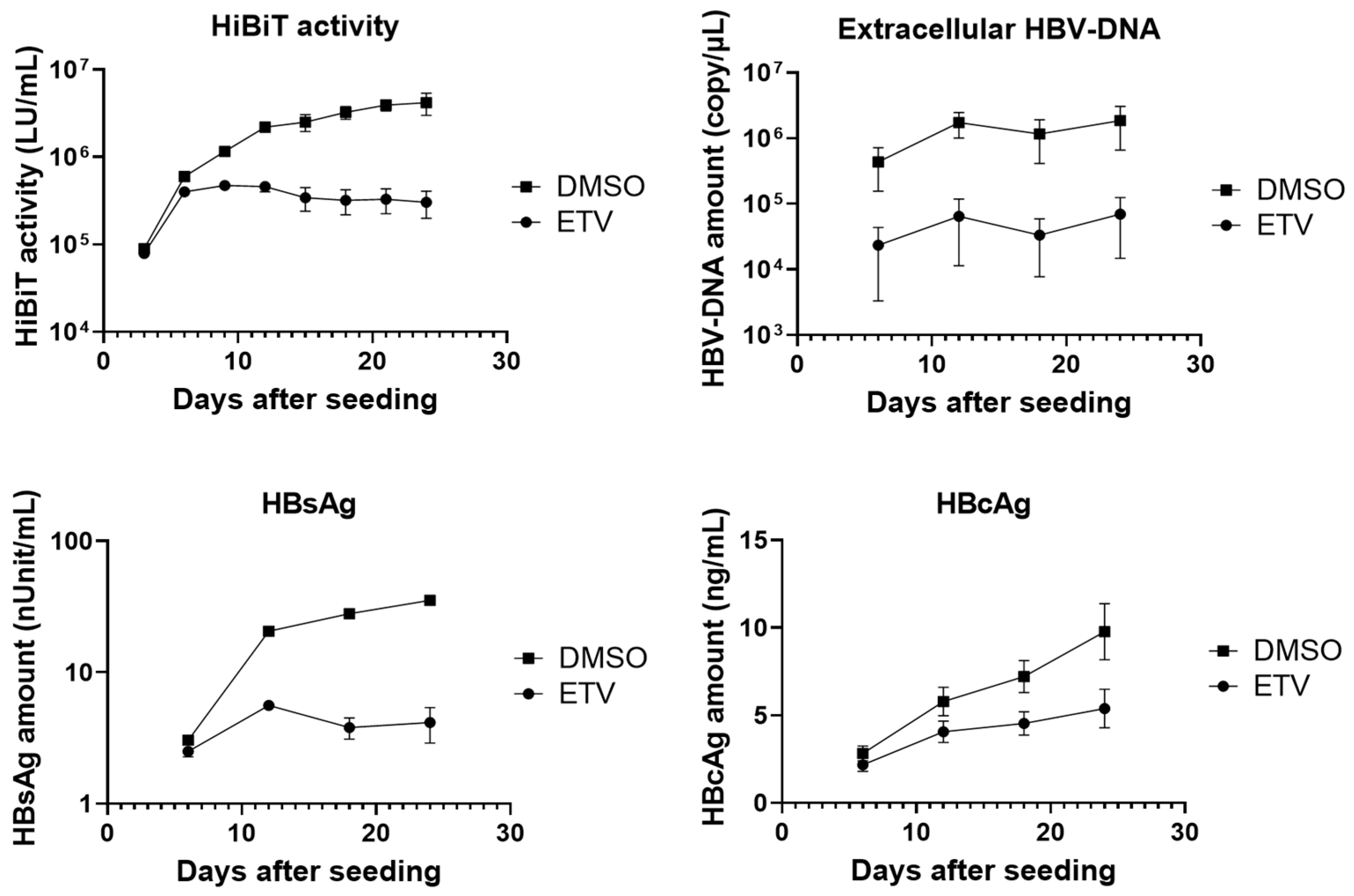 3.6. Infectivity of HiBiT-HBVcc from HepG2-B4 Cells