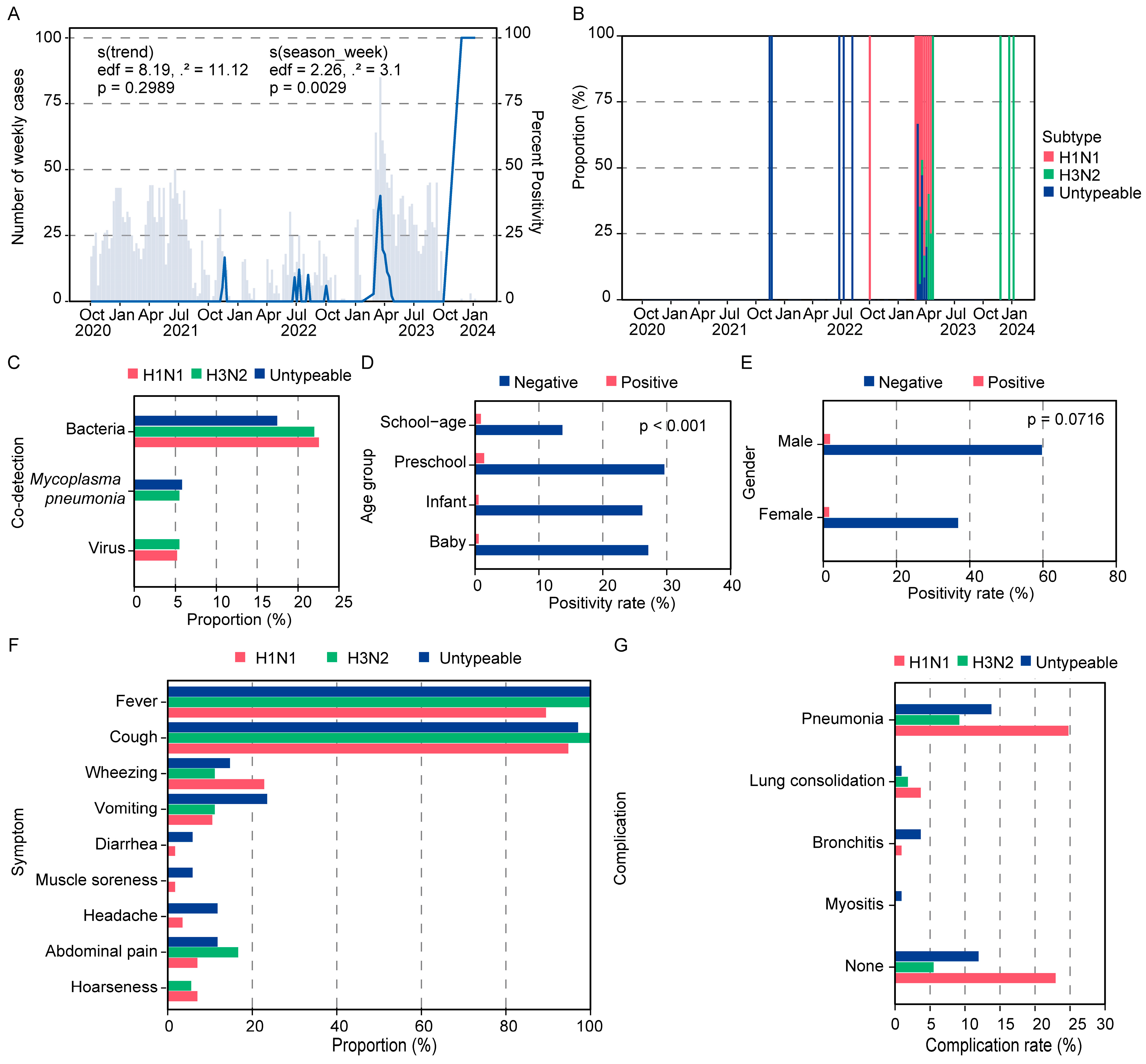 - Fu, C.; Huang, Q.; Zhao, J.; Mo, L.; Tang, W.; Lu, J.; Zhang, Y.; Lu, X.; Huang, Y.; Feng, Y.; et al. Clinical characteristics and co-infection analysis of influenza a virus in pediatric respiratory infections: A study based on tNGS technology. Eur. J. Clin. Microbiol. Infect. Dis. 2025, 44, 1695–1704. [Google Scholar] [CrossRef]