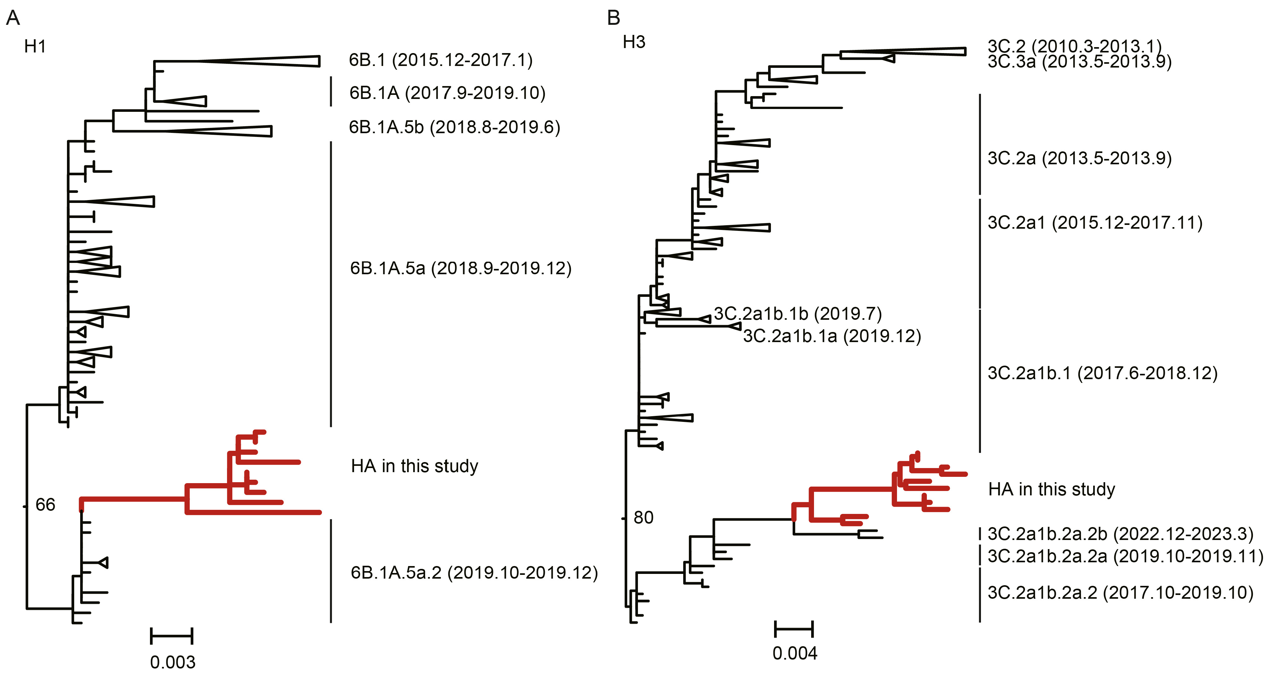 Genomic Evolution of Influenza A(H1N1)pdm09 and A/H3N2 Viruses Among Children in Wuhan, China, Spanning the COVID-19 Pandemic (2020–2023)