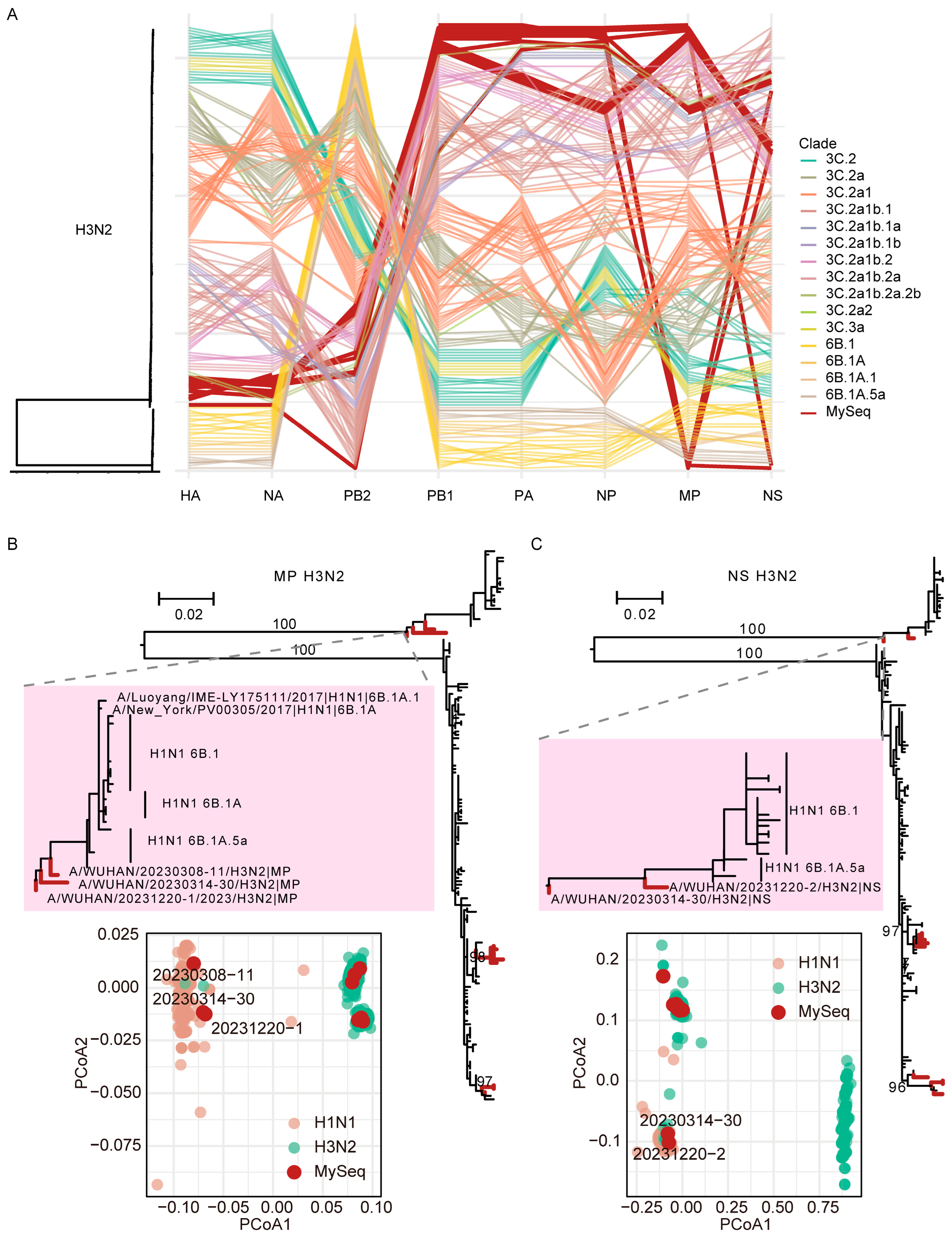 2.4. Phylogenomic Analysis & Reassortment Prediction by Constructing Phylogenetic Analysis and Principal Coordinate Analysis (PCoA)