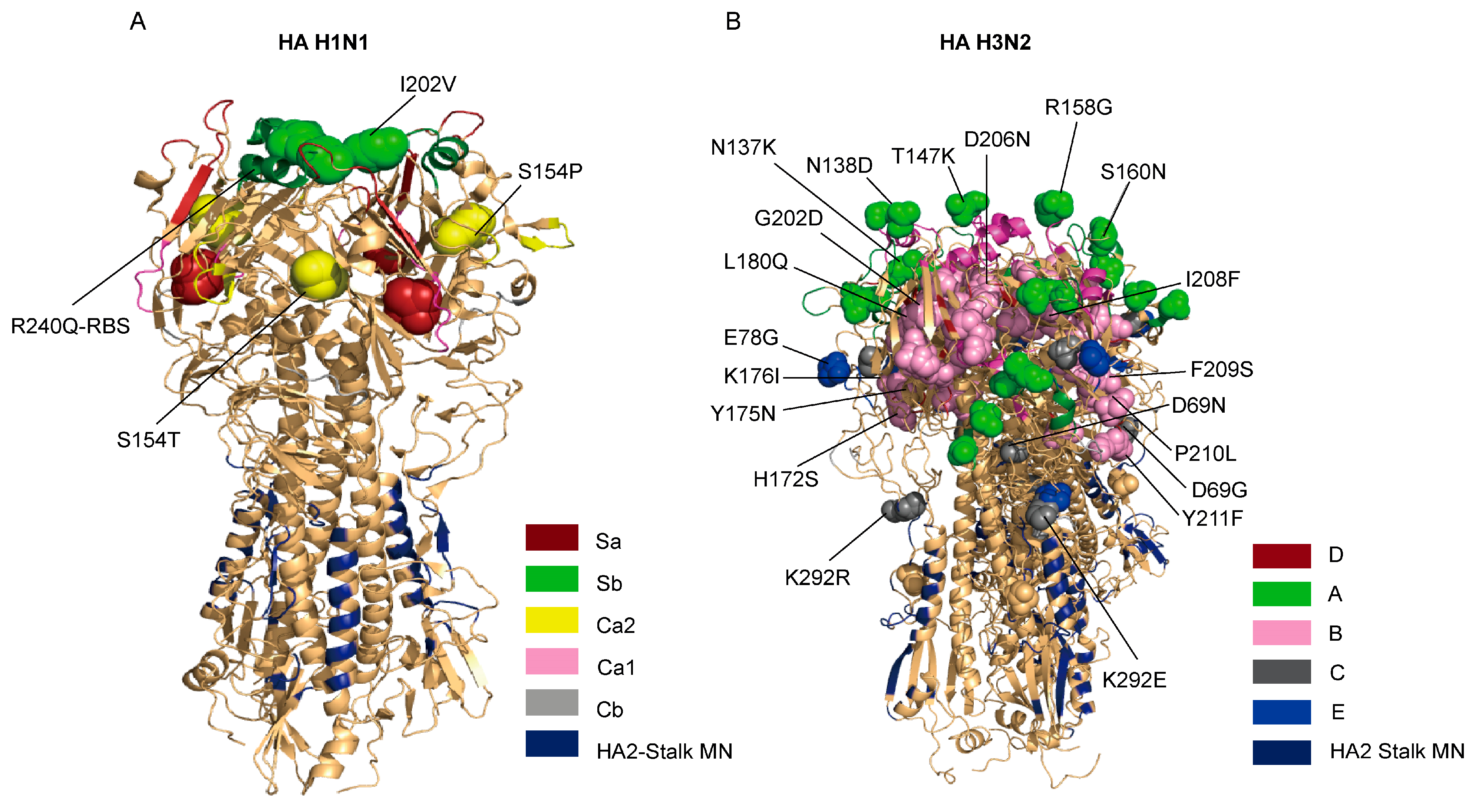 2.5. Mutational Analysis of HA and NA (H3N2 & H1N1)