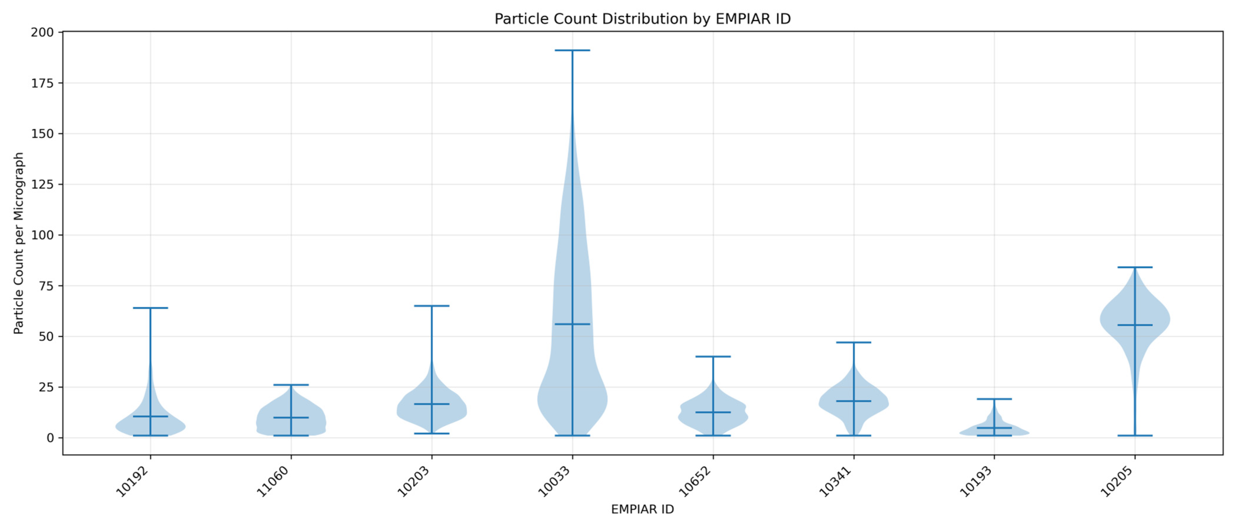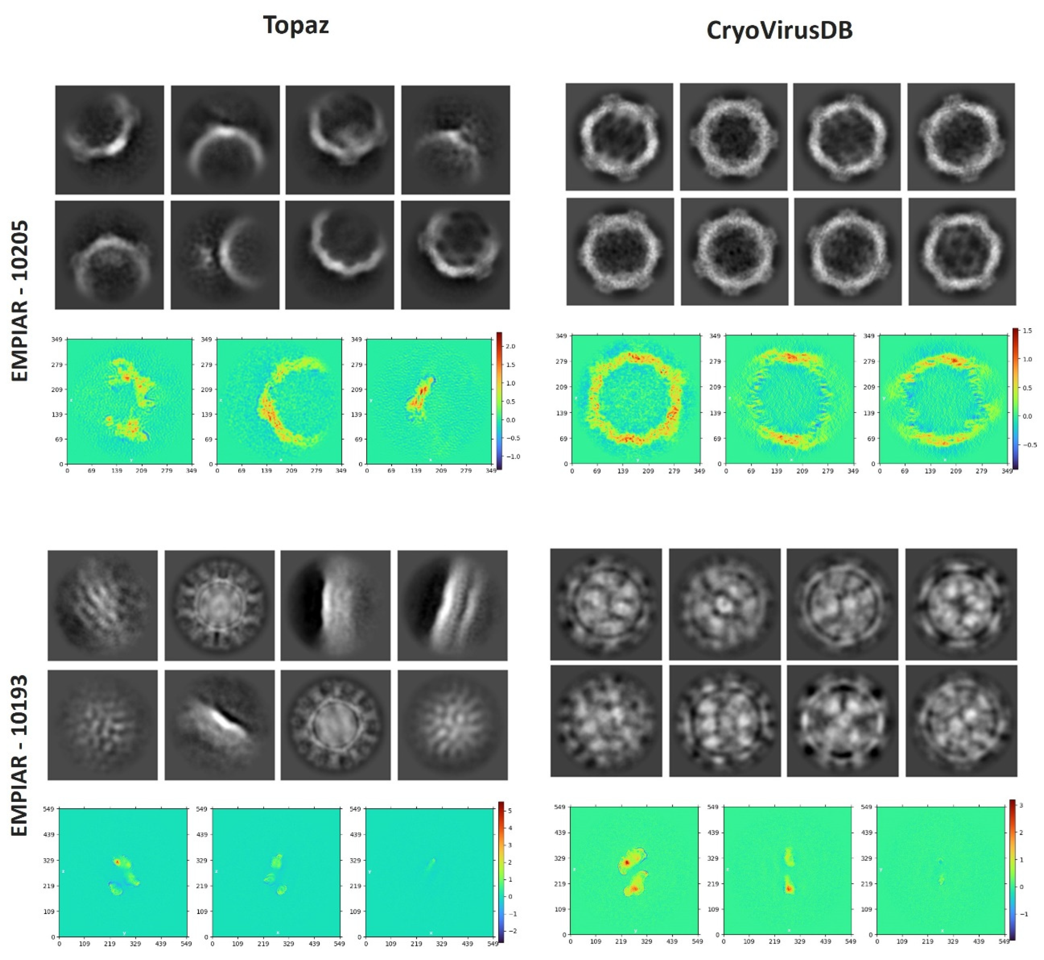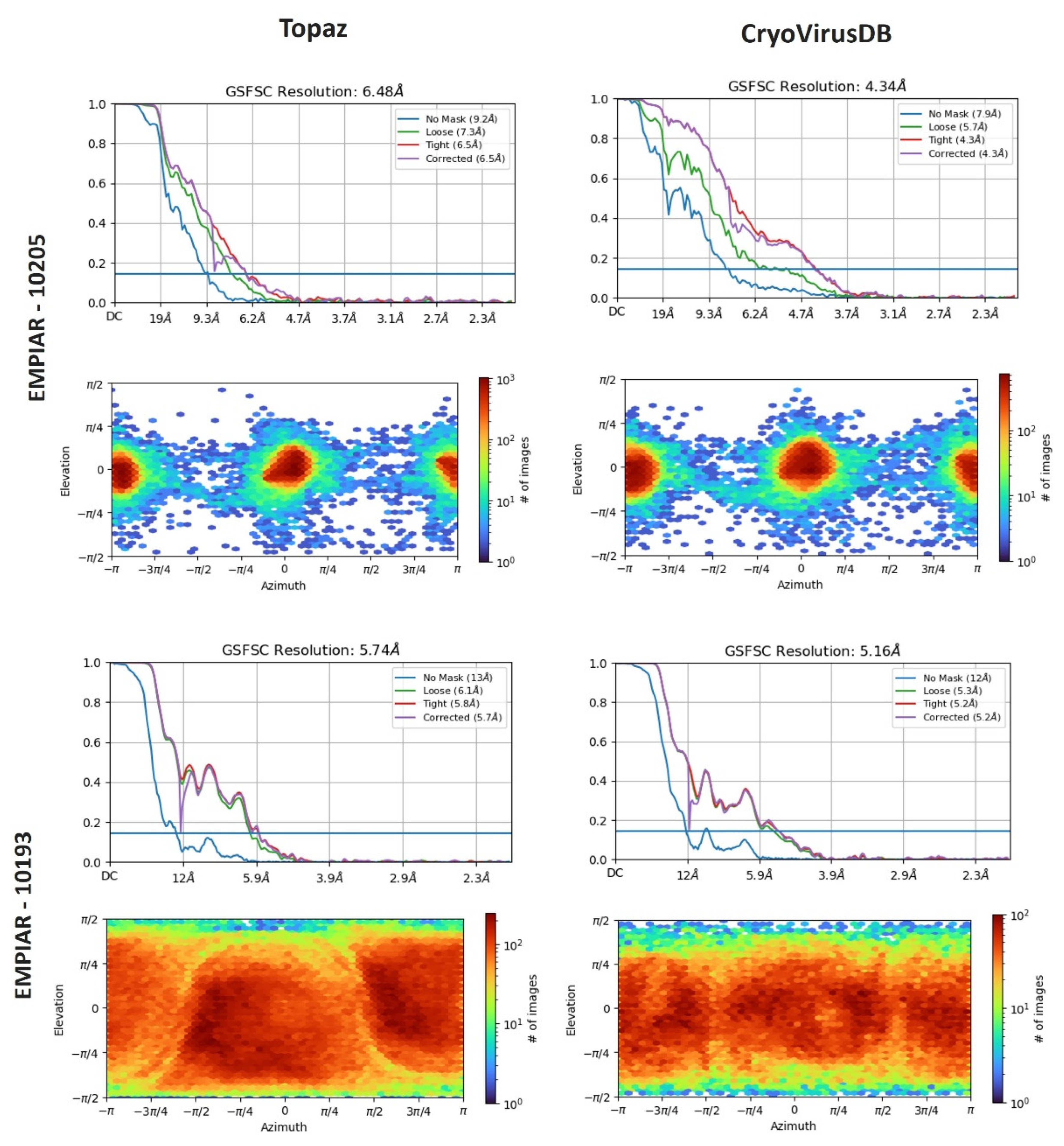 | 3D Density Map Statistics (Topaz) | 3D Density Map Statistics (CryoVirusDB) | |||||