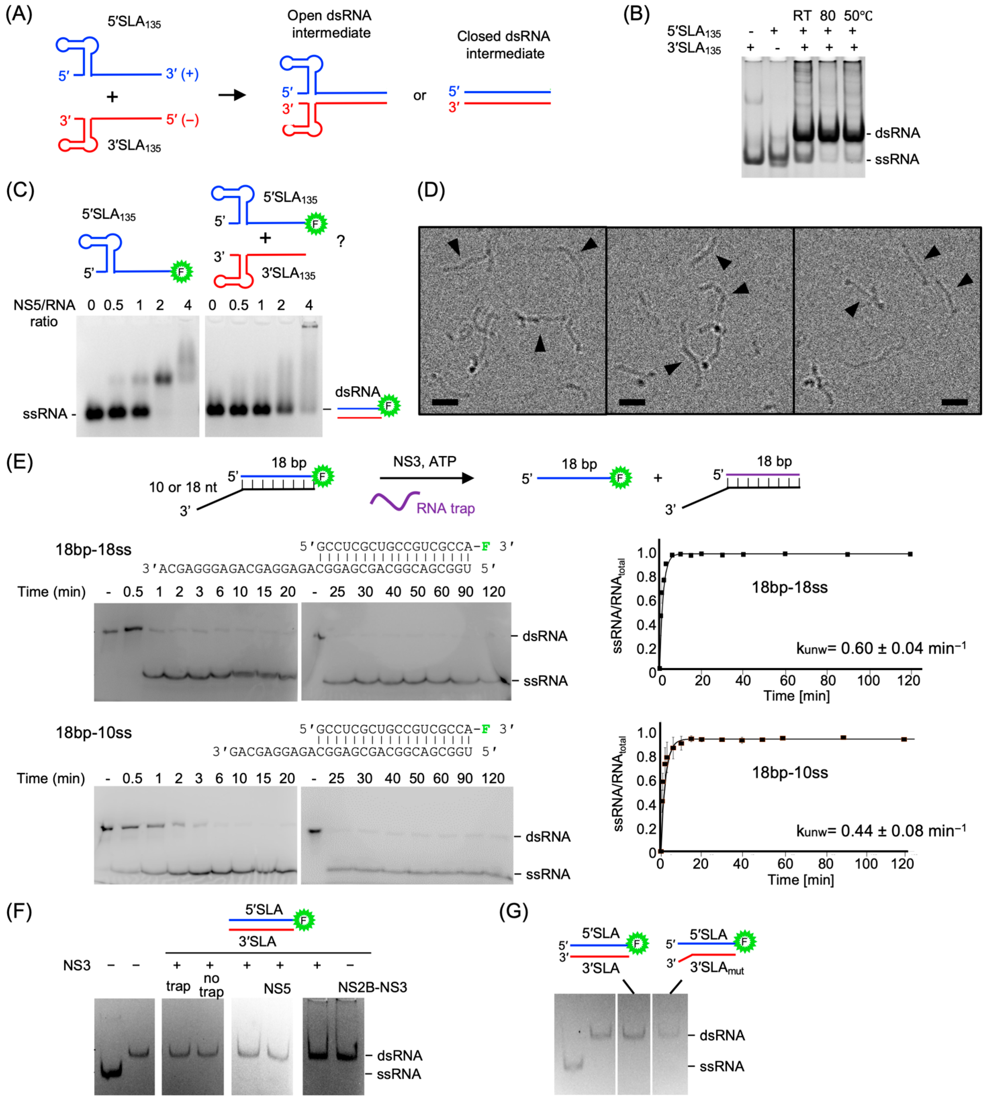 3.5. 5′SLA and 3′SLA Are Fully Annealed in the dsRNA Replication Intermediate