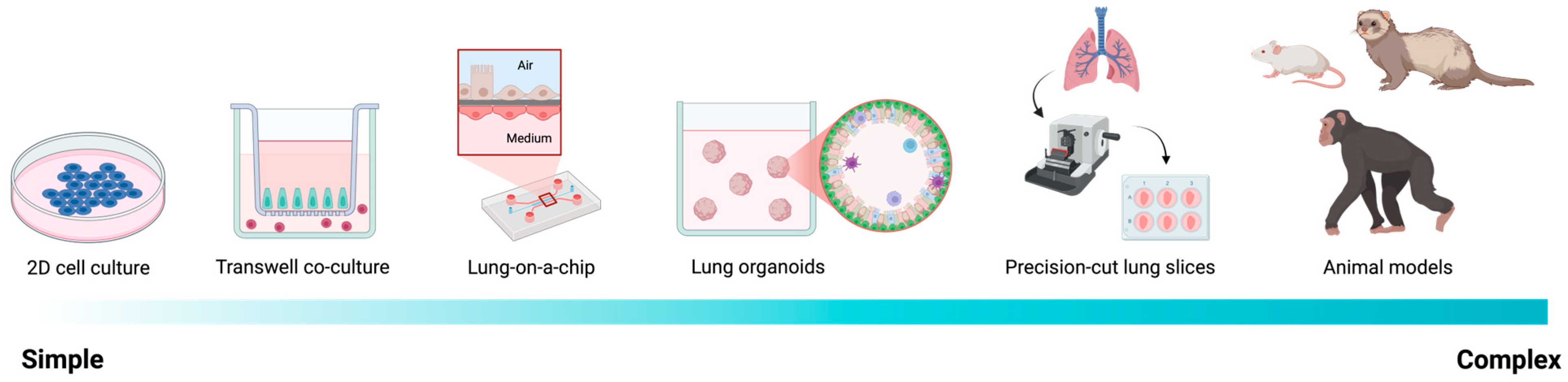 | Lung-on-Chip | 2D co-culture of epithelial, stromal, and immune cells in a microfluidic chip. |