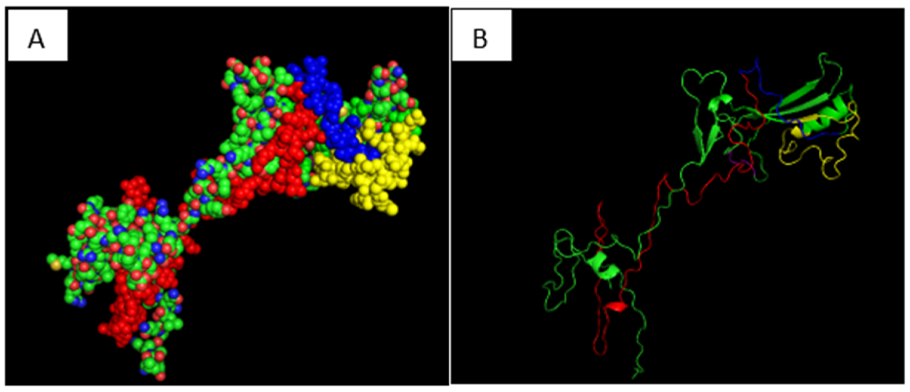 - Waterhouse, A.; Bertoni, M.; Bienert, S.; Studer, G.; Tauriello, G.; Gumienny, R.; Heer, F.T.; de Beer, T.A.P.; Rempfer, C.; Bordoli, L.; et al. SWISS-MODEL: Homology modelling of protein structures and complexes. Nucleic Acids Res. 2018, 46, W296–W303. [Google Scholar] [CrossRef]