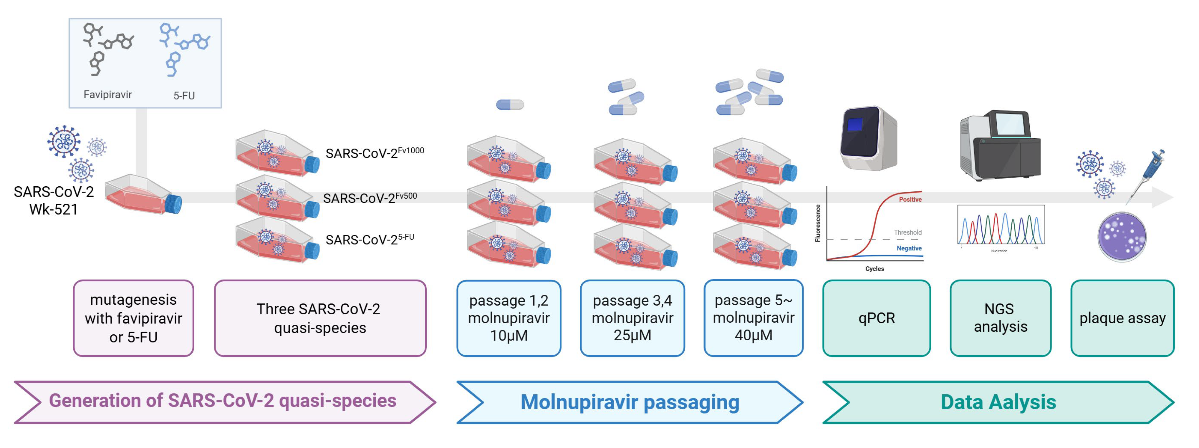 Figure 1). By pre-treating viral populations with 5-FU and favipiravir, we aimed to generate quasi-species populations approximating natural viral genetic diversity [