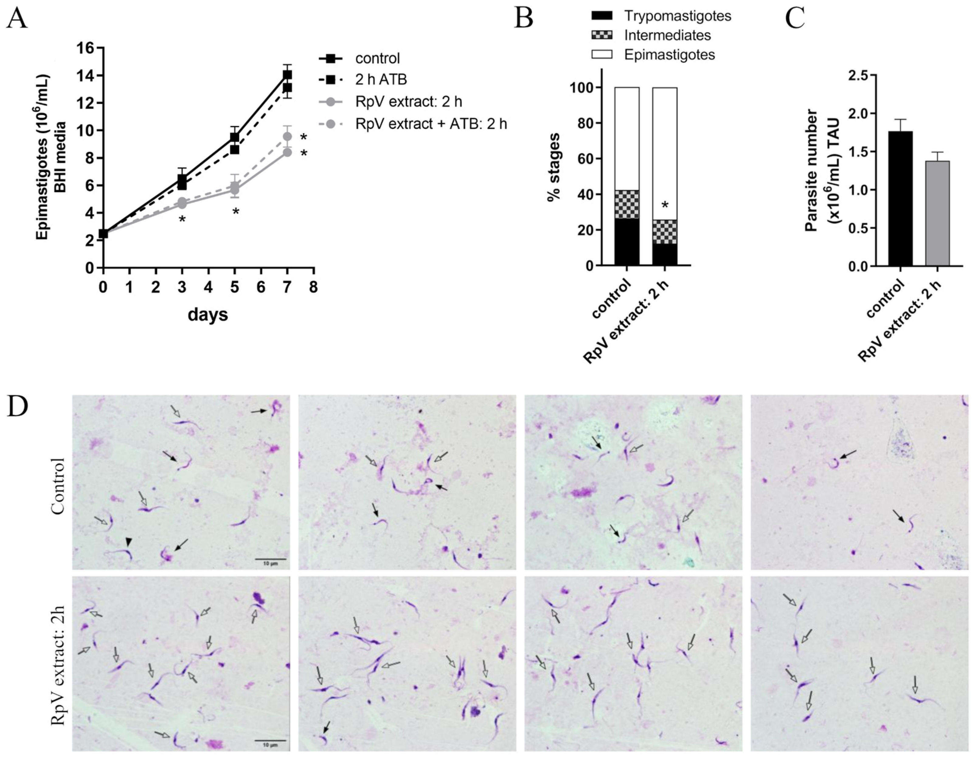 3.3. RpVs Affect Epimastigote T. cruzi Proliferation and Metacyclogenesis