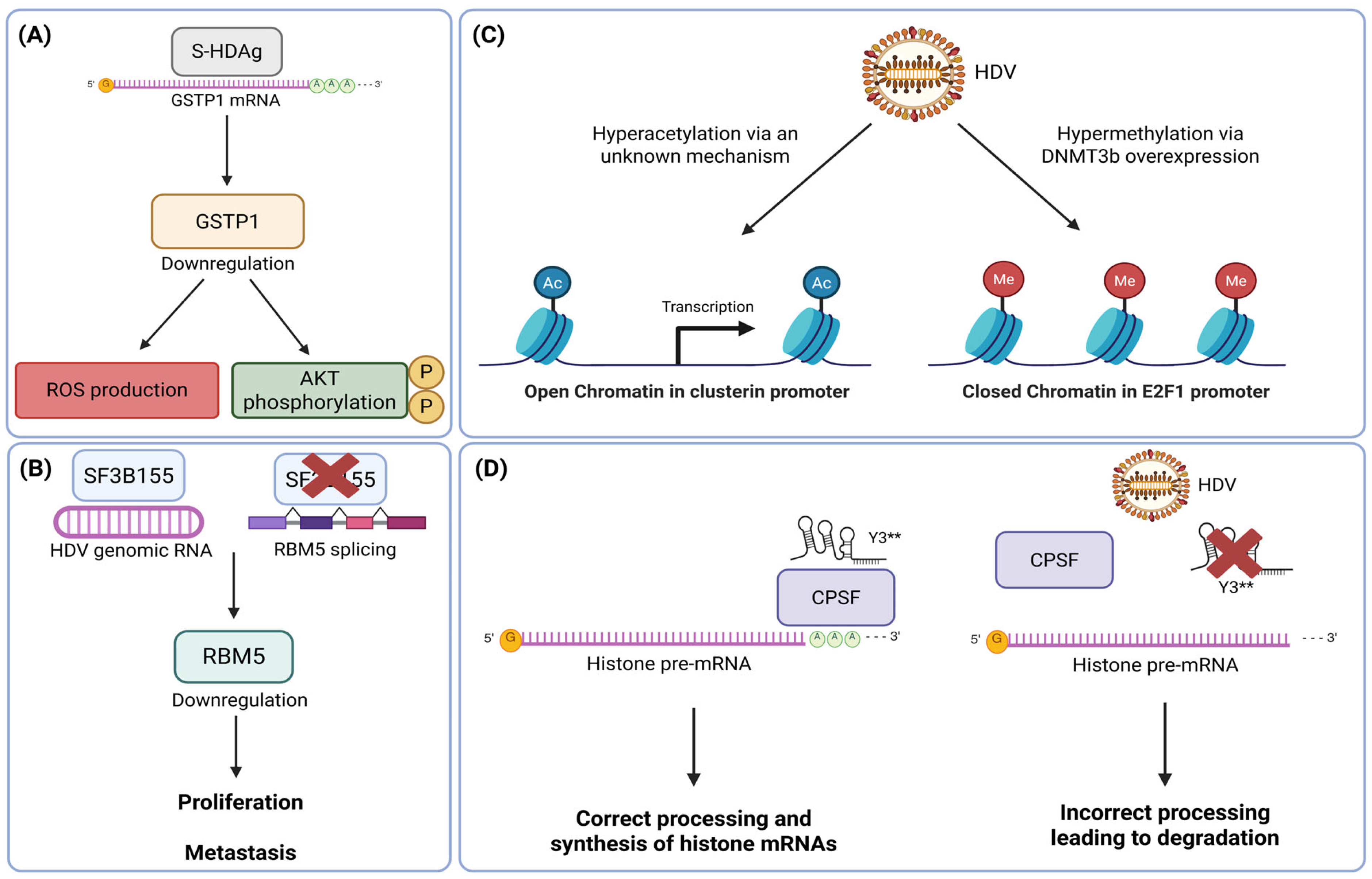 - Chen, M.; Du, D.; Zheng, W.; Liao, M.; Zhang, L.; Liang, G.; Gong, M. Small hepatitis delta antigen selectively binds to target mRNA in hepatic cells: A potential mechanism by which hepatitis D virus downregulates glutathione S-transferase P1 and induces liver injury and hepatocarcinogenesis. Biochem. Cell Biol. 2019, 97, 130–139. [Google Scholar] [CrossRef] [PubMed]