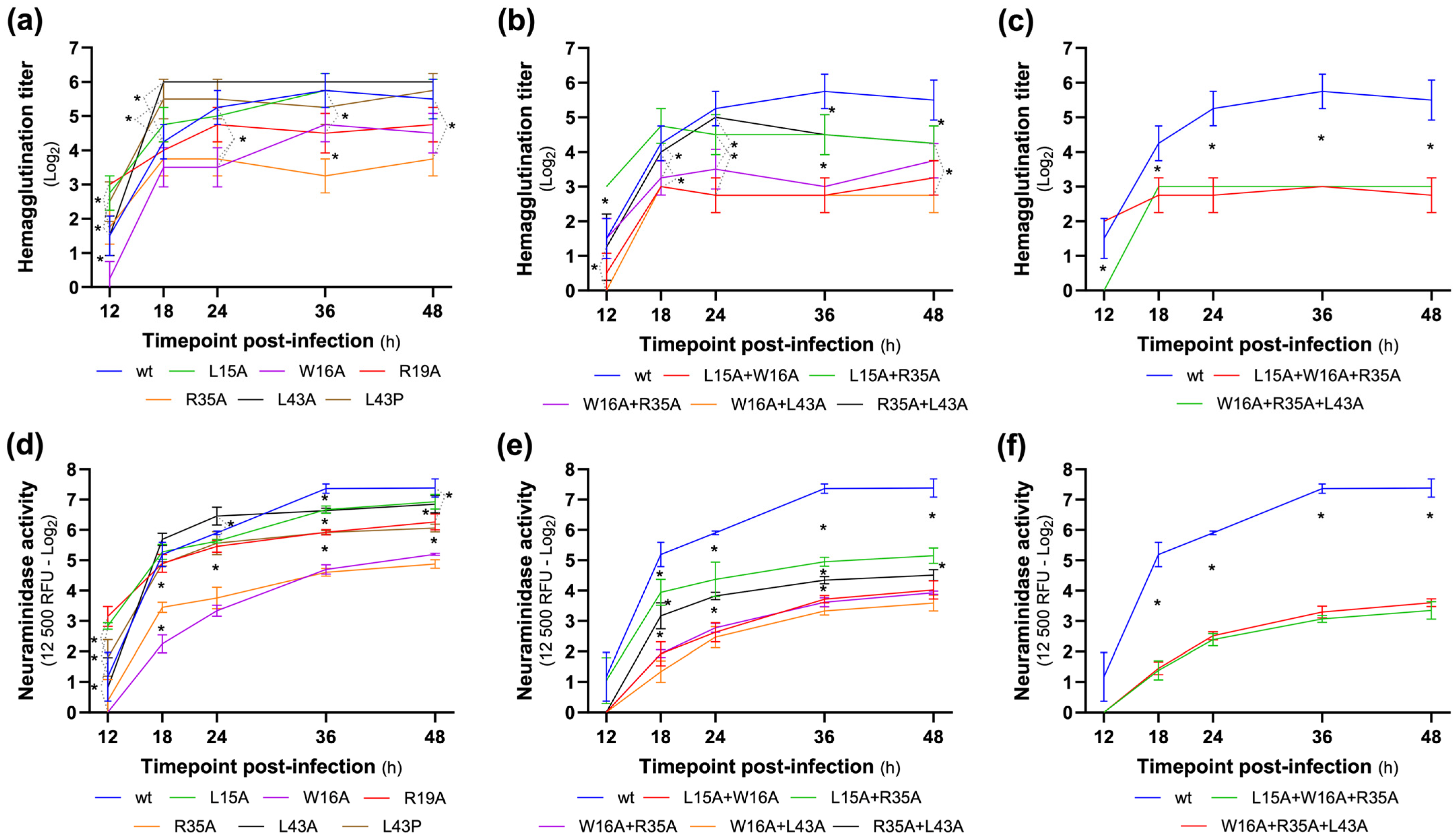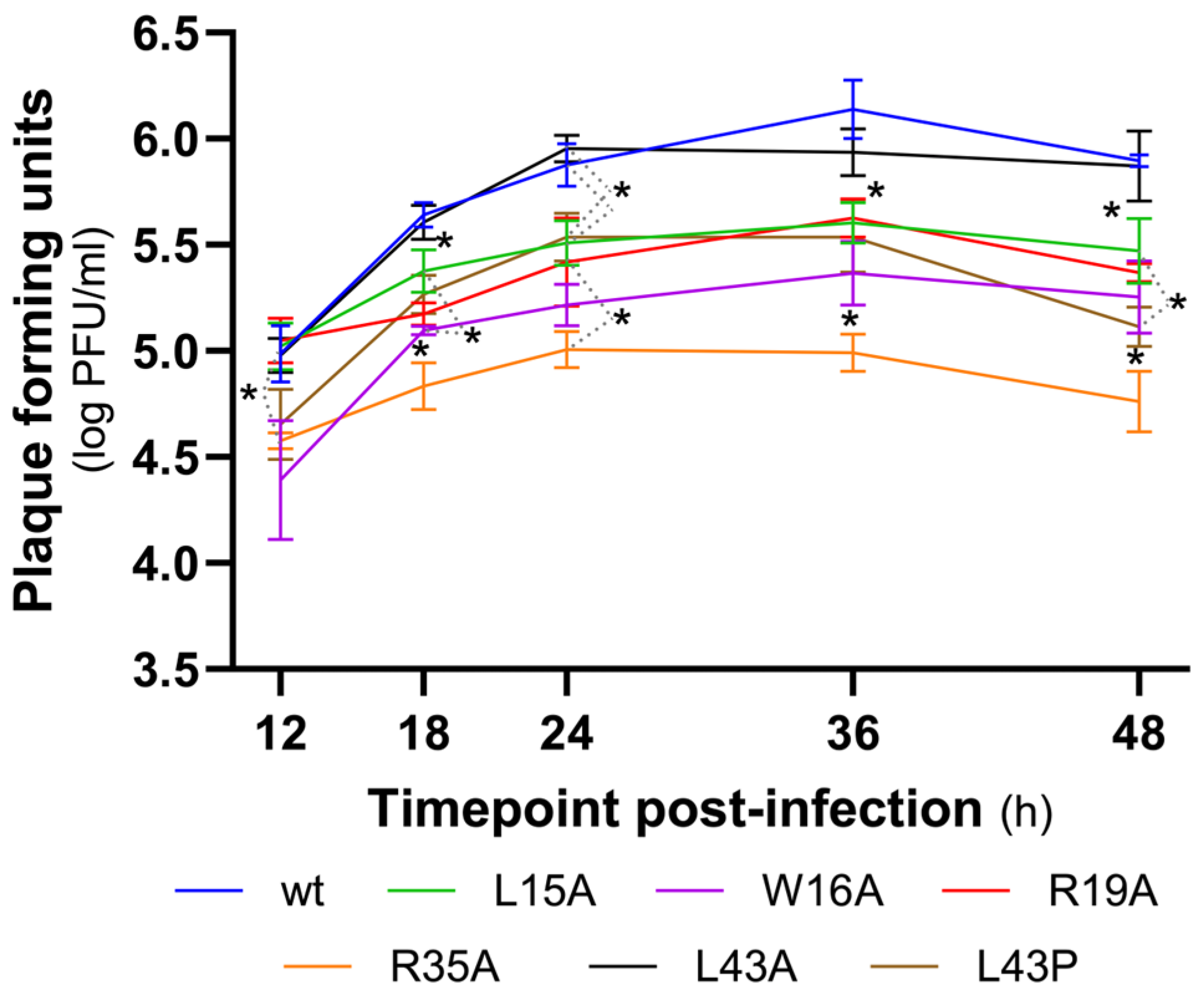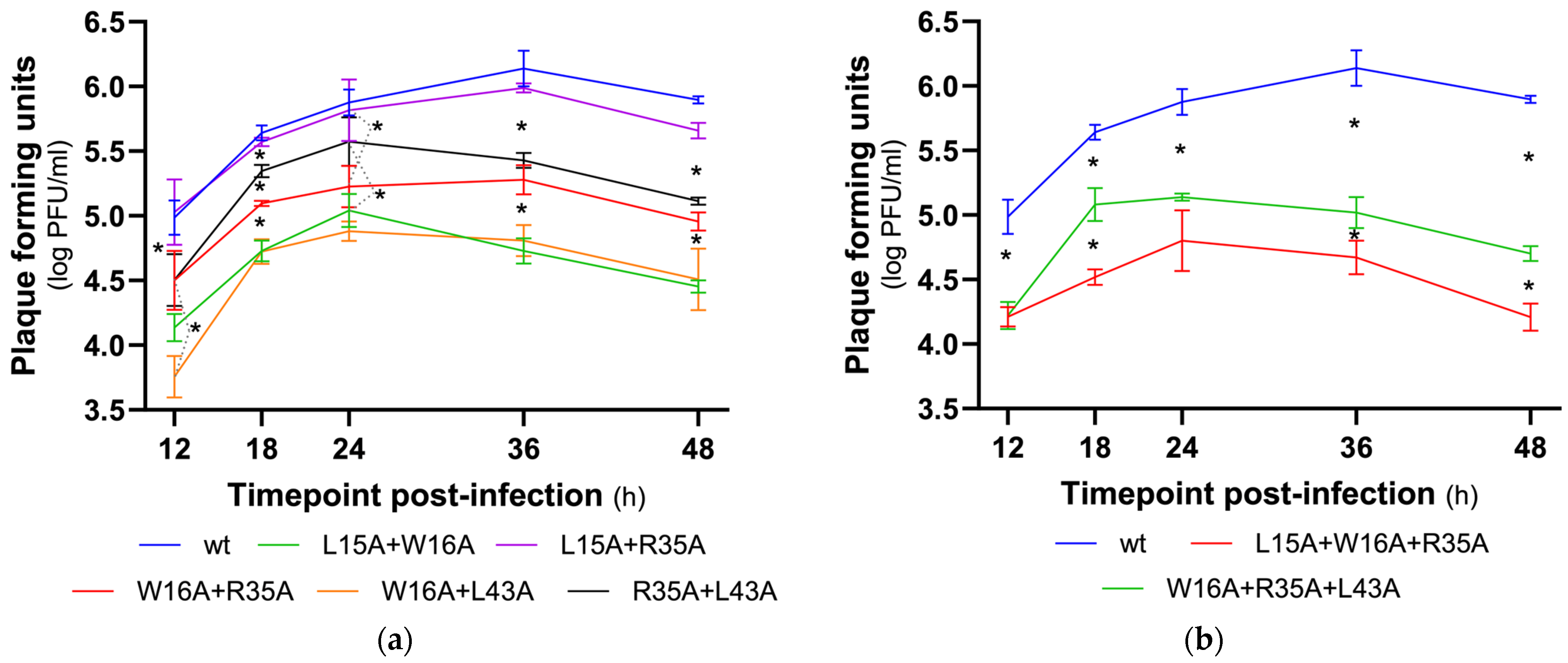 3.3. Mutation of the Hot Spot Amino Acids Affects Viral Replication In Vitro