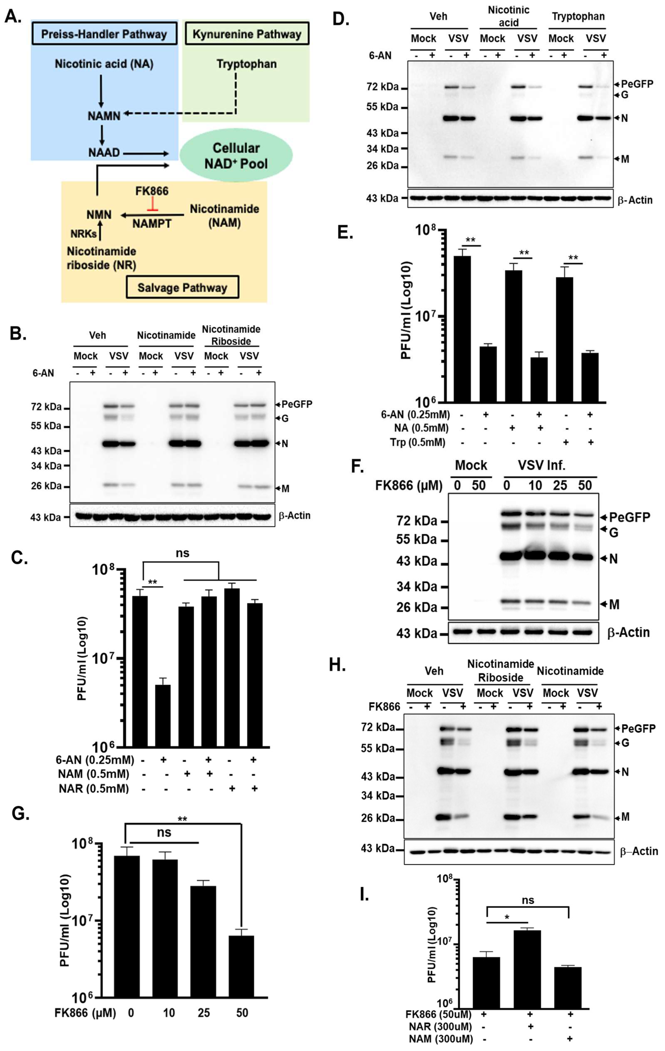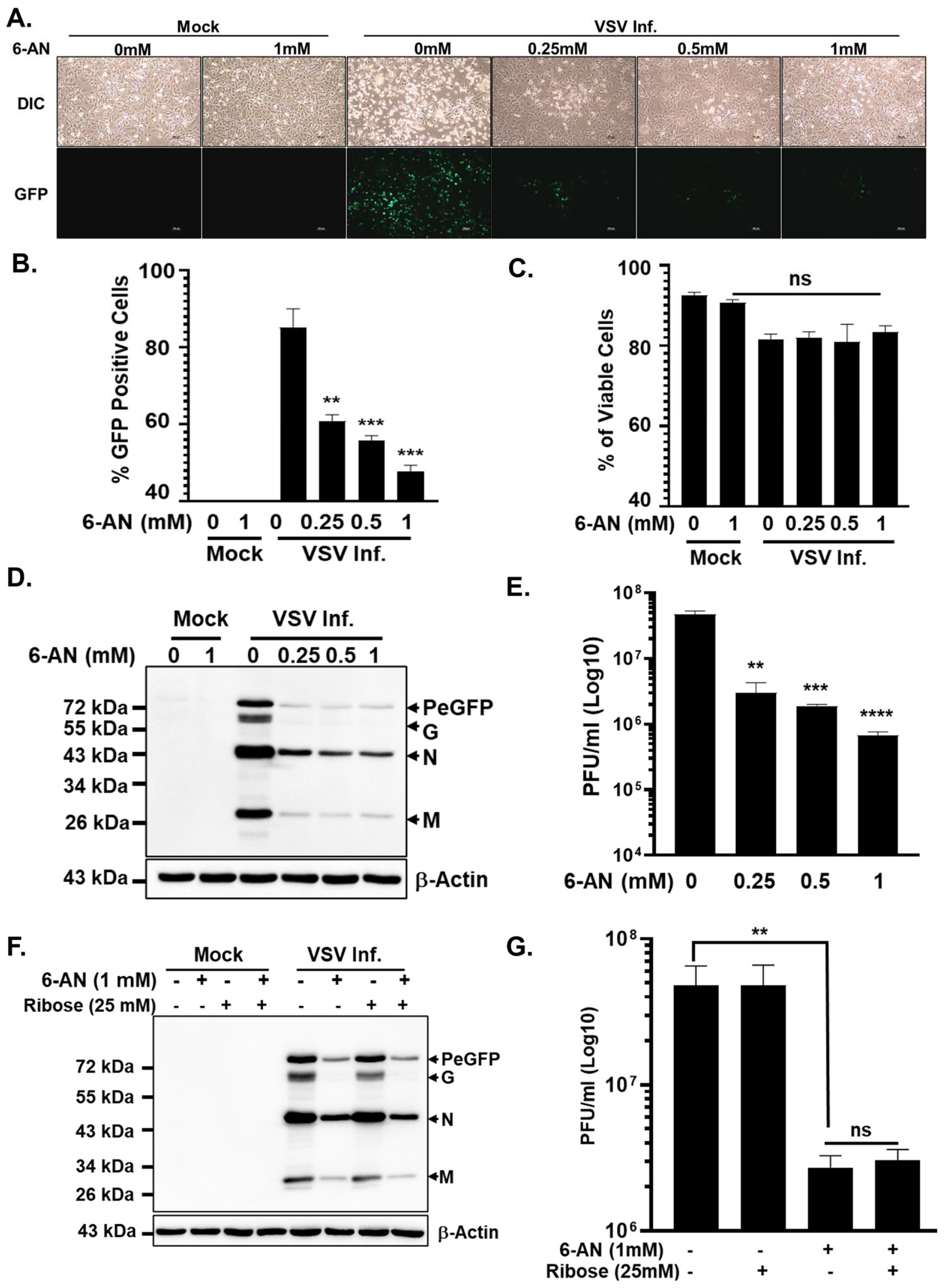 3.4. 6-AN Depletes Cellular NAD+ Pool and Inhibits VSV Replication