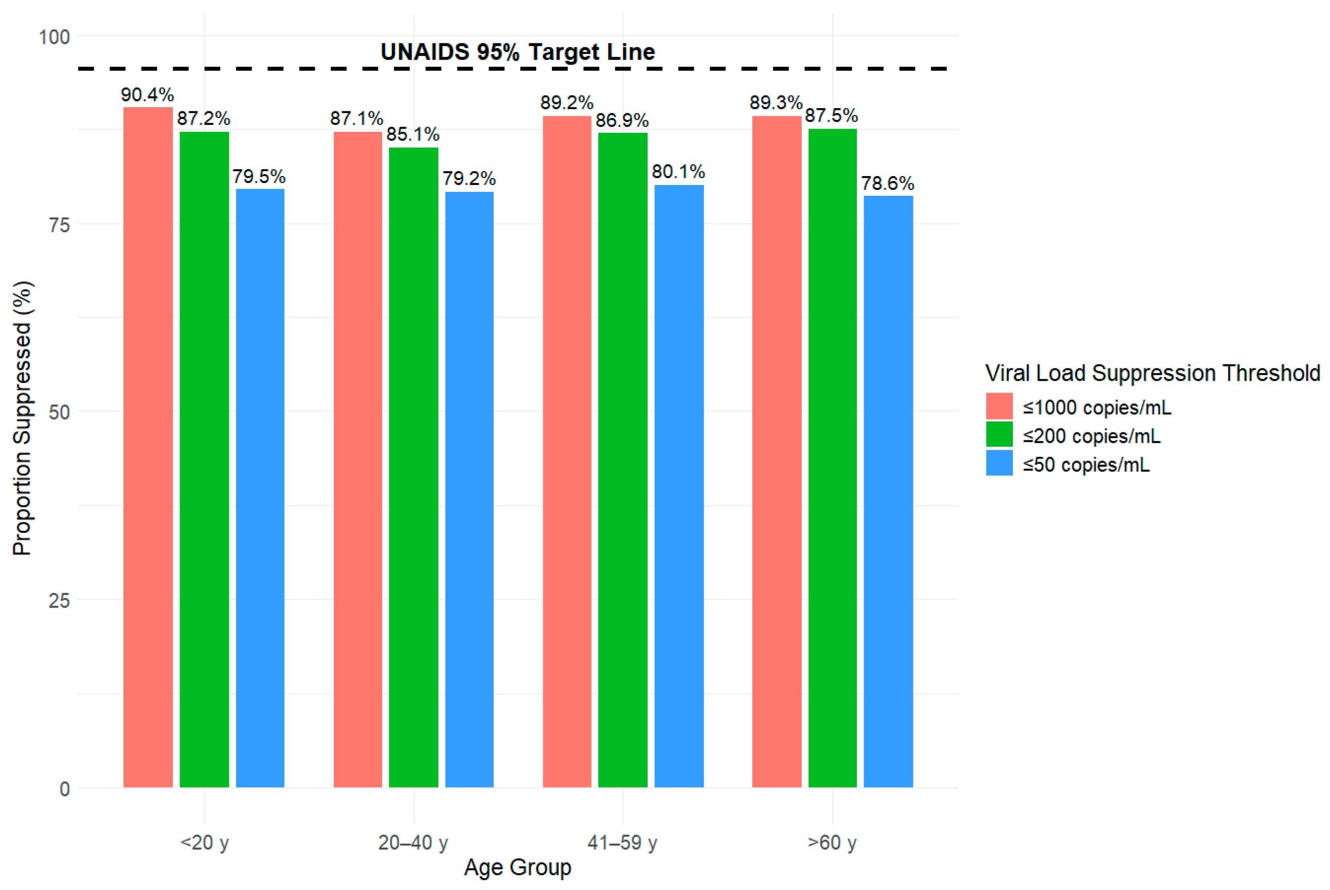3.2. Viral Suppression Disaggregated by Age