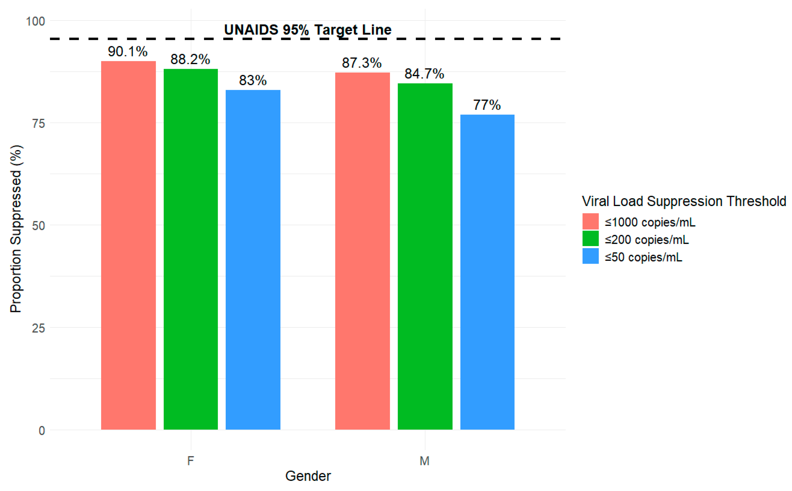 3.3. Viral Suppression Disaggregated by Gender