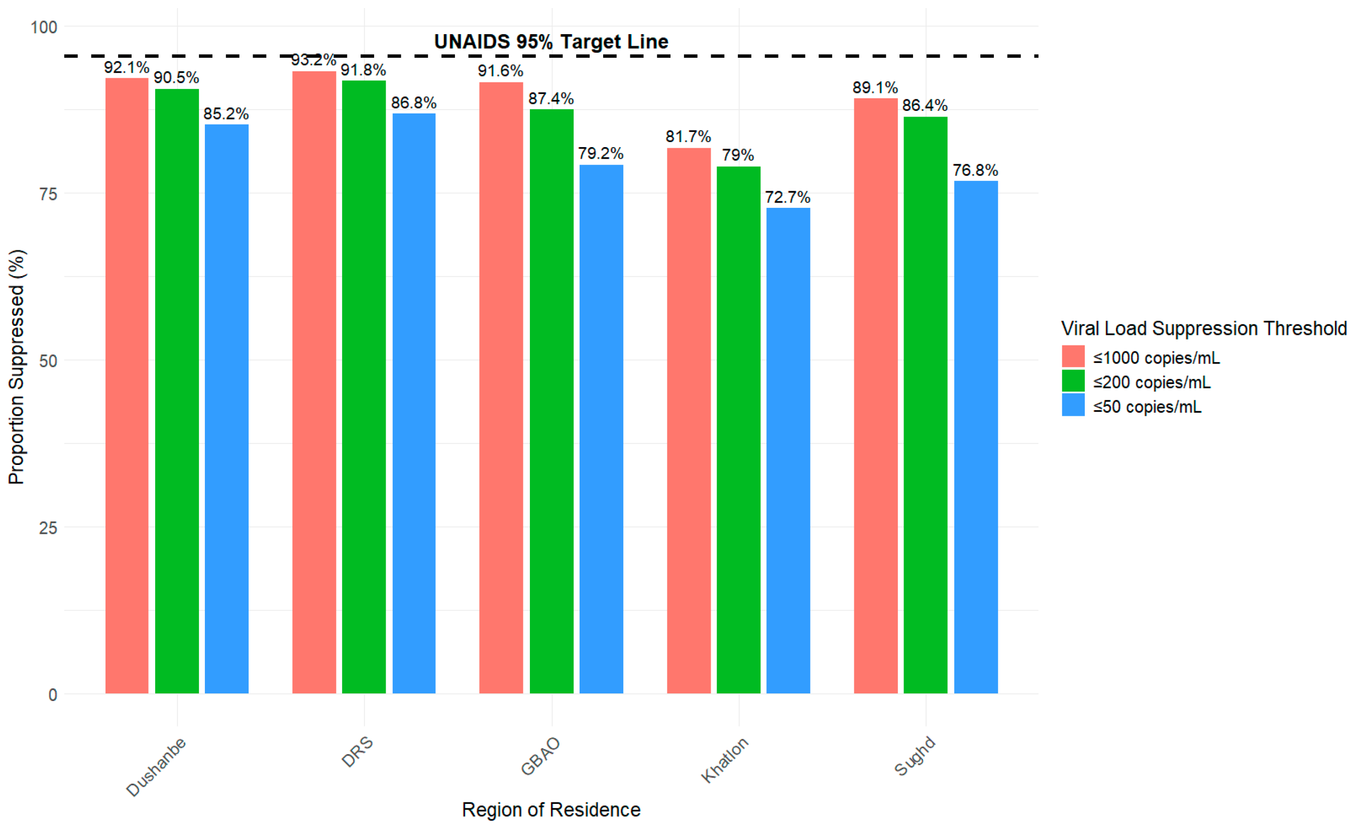 3.5. Viral Suppression Disaggregated by Region of Residence