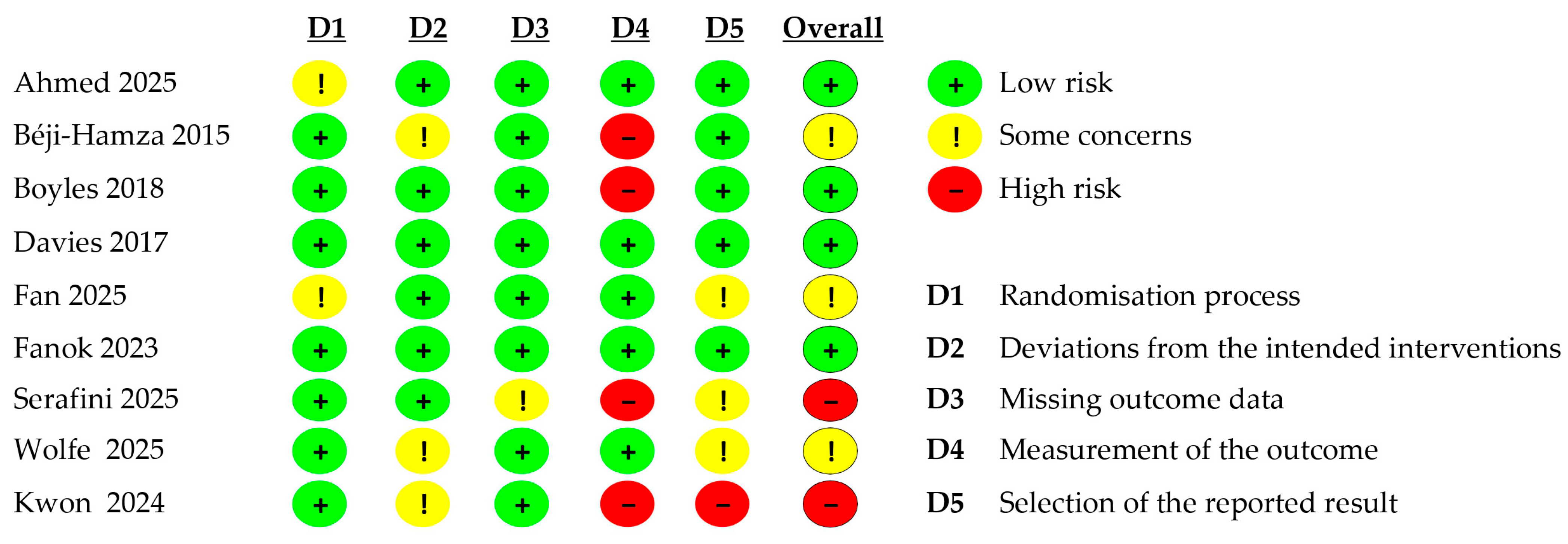 3.1. Quality Assessment and Risk-of-Bias Interpretation