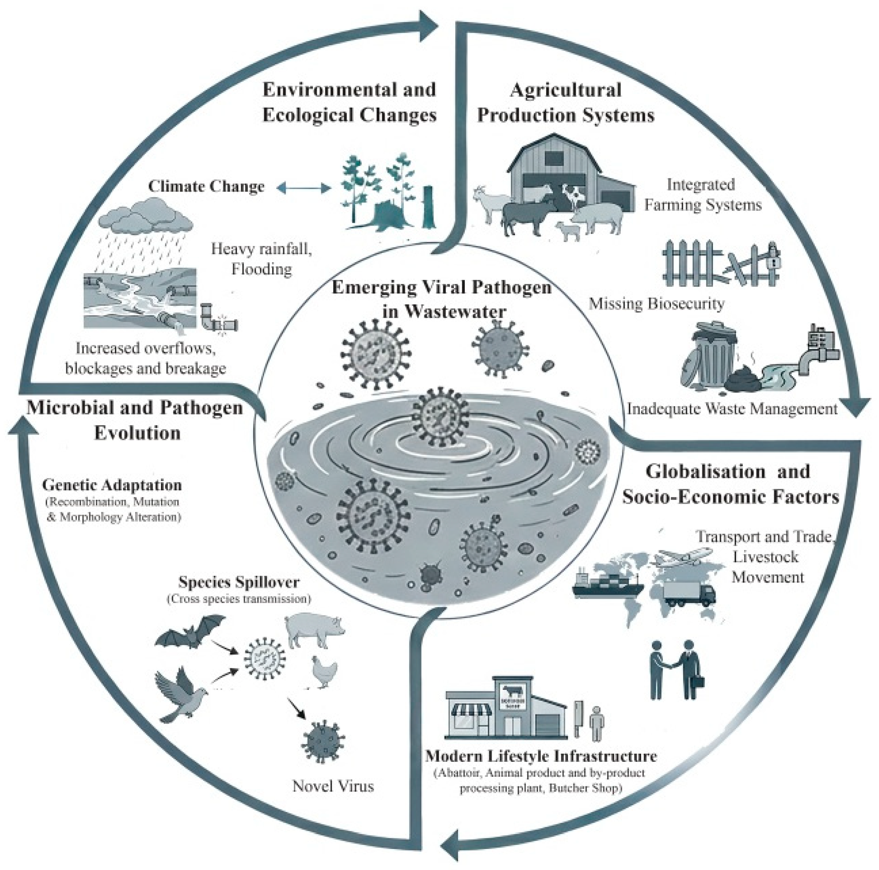 - Block 2: Intervention: Centered on the environmental matrix of interest, specifically WBS and its role in the management or monitoring of emerging pathogens.