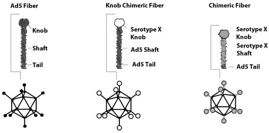 - Shayakhmetov, D.M.; Lieber, A. Dependence of adenovirus infectivity on length of the fiber shaft domain. J. Virol. 2000, 74, 10274–10286. [Google Scholar] [CrossRef]