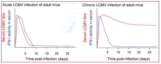 - Lee, L.N.; Burke, S.; Montoya, M.; Borrow, P. Multiple mechanisms contribute to impairment of type 1 interferon production during chronic lymphocytic choriomeningitis virus infection of mice. J. Immunol. 2009, 182, 7178–7189. [Google Scholar] [CrossRef] [PubMed]