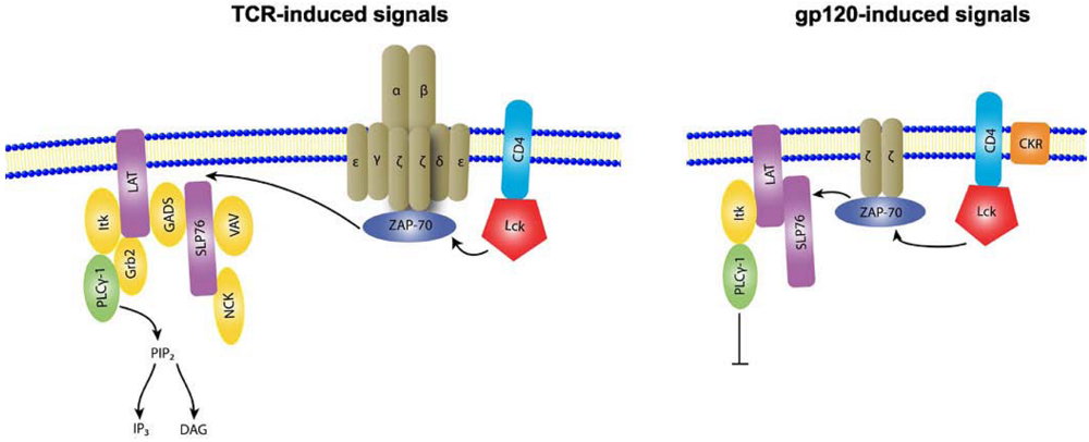 | Initial trigger | TCR-pMHC | gp120-CD4 |