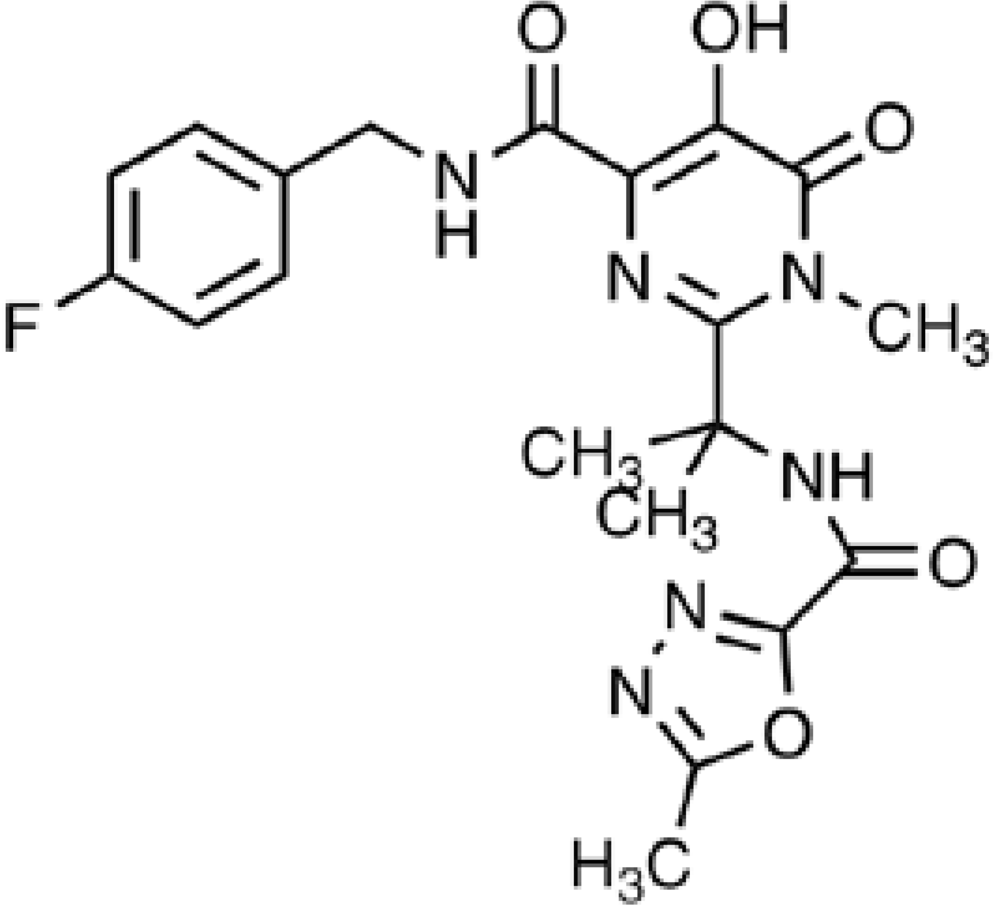 | Elvitegravir JTK-303 GS-9137 | Japan Tobacco Inc. and Gilead Sciences | ![]() | 7 | 1.7 | 3; 9* | Phase III | [35,47] |
