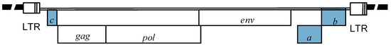 - Zhang, Z.; Kim, E.; Martineau, D. Functional characterization of a piscine retroviral promoter. J. Gen. Virol. 1999, 80, 3065–3072. [Google Scholar] [CrossRef]